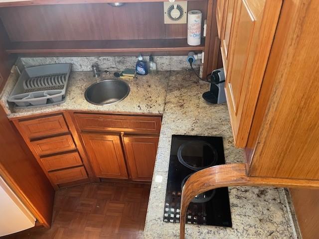 Cuisine en bas avec évier, plaque et Four électrique, Frigo/congélateur 220V, cumulus 20l (chargeur rapide), eau chaude/froide sous pression + Carré dinette (table + sellerie en bon état).