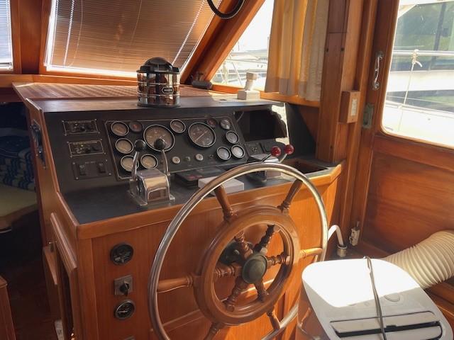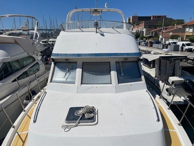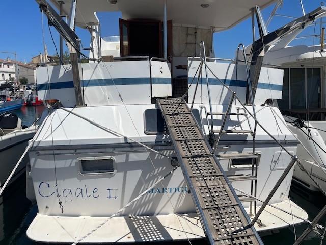 Très marin, propulsé par 2 moteurs CUMMINS 210cv Diesel, 2 très belles cabines avec salle de bain privative, carré lumineux et fonctionnel pour se détendre et recevoir, cuisine en bas tout équipé avec son coin dinette, grande zone de FLY BRIDGE, un spacieux cockpit arrière parfait pour la détente au bord de l’eau et la pêche.