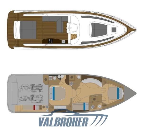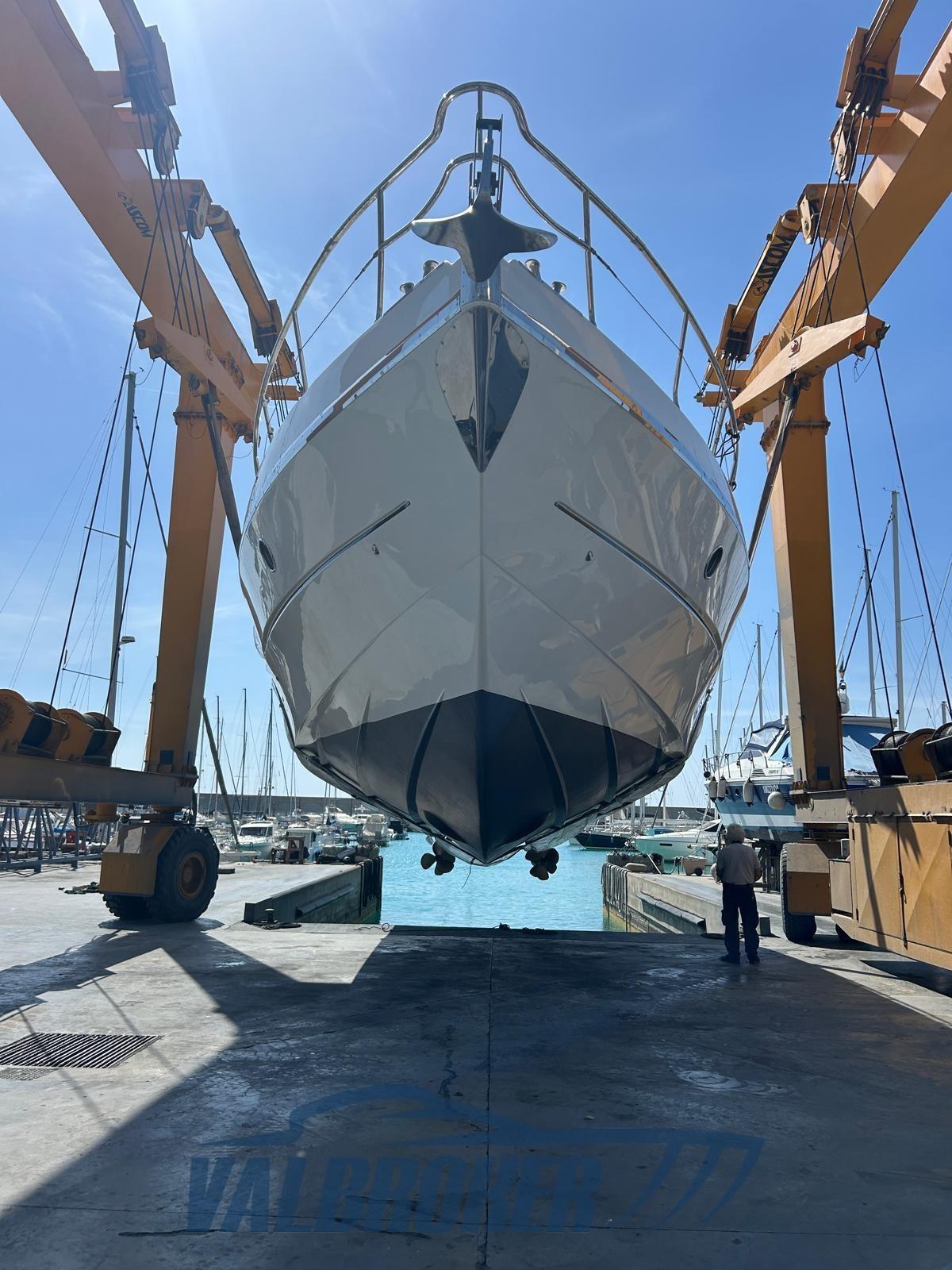Un toit rigide élégant et sportif. Année modèle 2010. Propulsé par deux Volvo Penta D 11 IPS 900. Les moteurs et transmissions étaient entretenus périodiquement par des officiers Volvo Penta. Sous le pont, il y a trois cabines doubles : une double à la proue, une double au centre du navire et une avec deux lits superposés. En option complète : générateur, joystick, propulseur à arc, climatisation. Version avec plateforme arrière en teck allongée. Application d’antifoulement et approvisionnement annuel en anode sacrificielle.