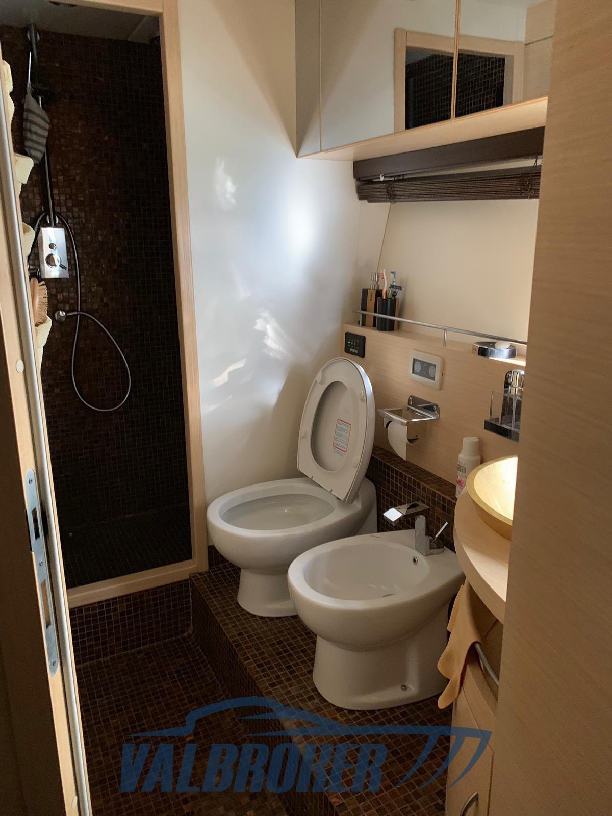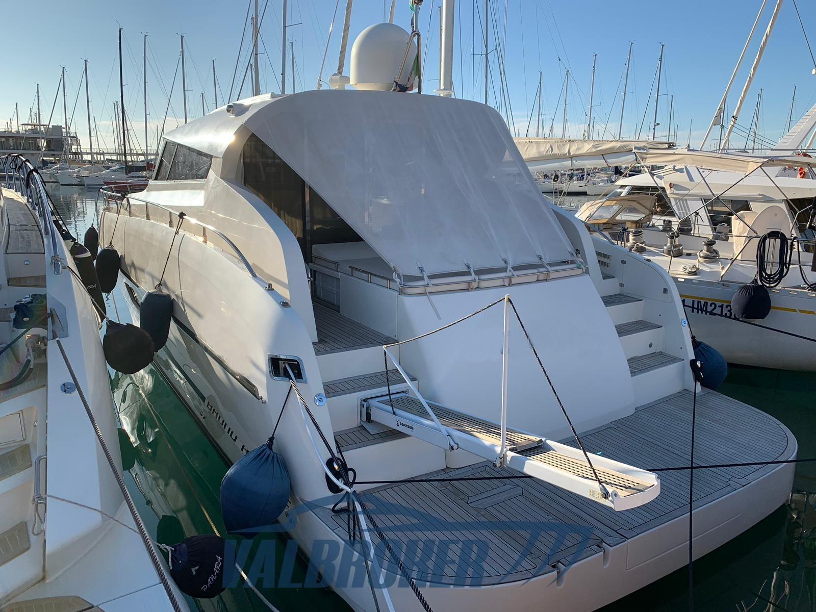 Eau sous pression, 4 Batteries, Passavant en teck, Douche de cockpit, Indicateurs de flaps, Lavabo dans le cockpit, Éclairage de courtoisie, 4 Panneau solaire, Passerelle (idraulica Besenzoni), Plateforme arrière (allungata in teak), Porte latérale, Cockpit en teck (sintetico), Prise de quai, Guindeau électrique (Maxwell), Echelle de bain, table de cockpit.