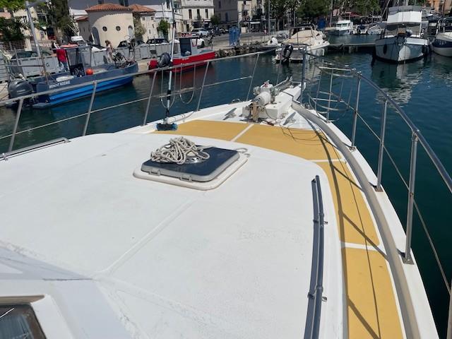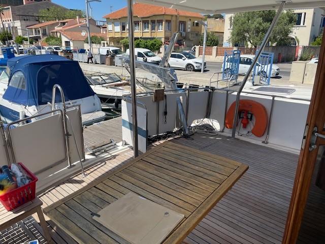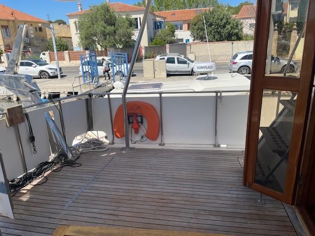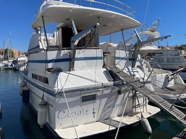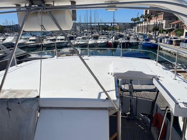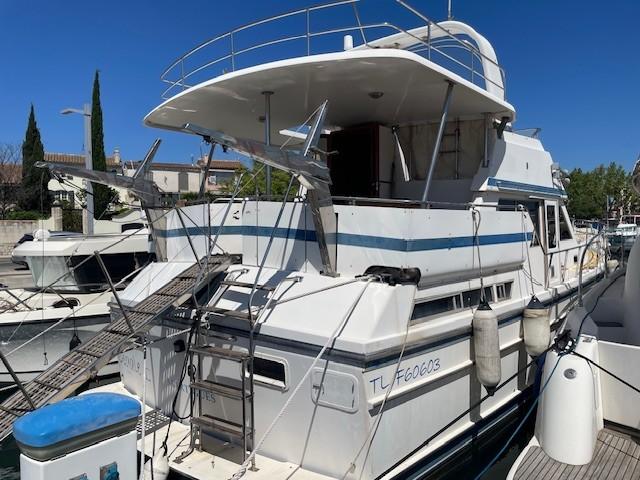 Très marin, propulsé par 2 moteurs CUMMINS 210cv Diesel, 2 très belles cabines avec salle de bain privative, carré lumineux et fonctionnel pour se détendre et recevoir, cuisine en bas tout équipé avec son coin dinette, grande zone de FLY BRIDGE, un spacieux cockpit arrière parfait pour la détente au bord de l’eau et la pêche.