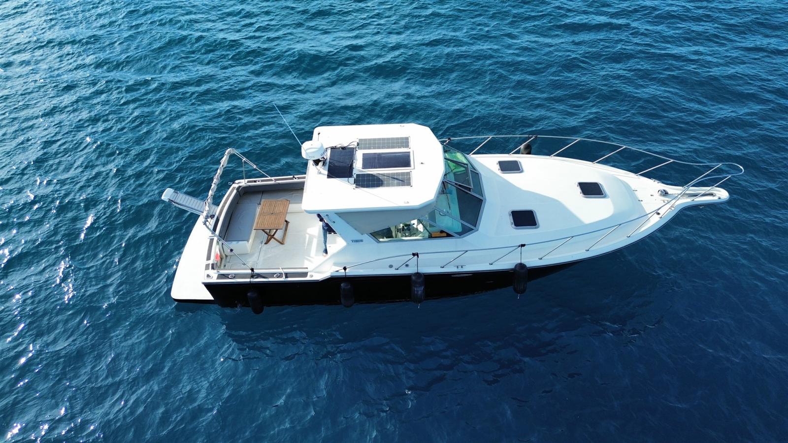 Eau sous pression, Douche de cockpit, Flaps hydrauliques, Hard top, Panneau solaire, Passerelle (IDRAULICA), Prise de quai, Guindeau électrique, Corne.