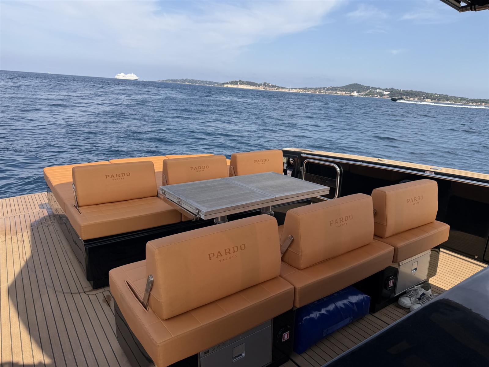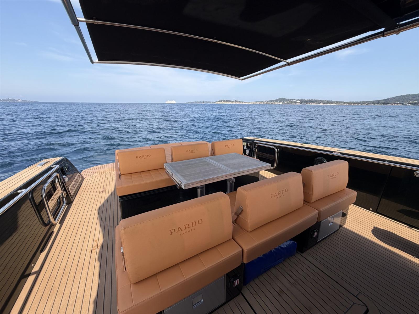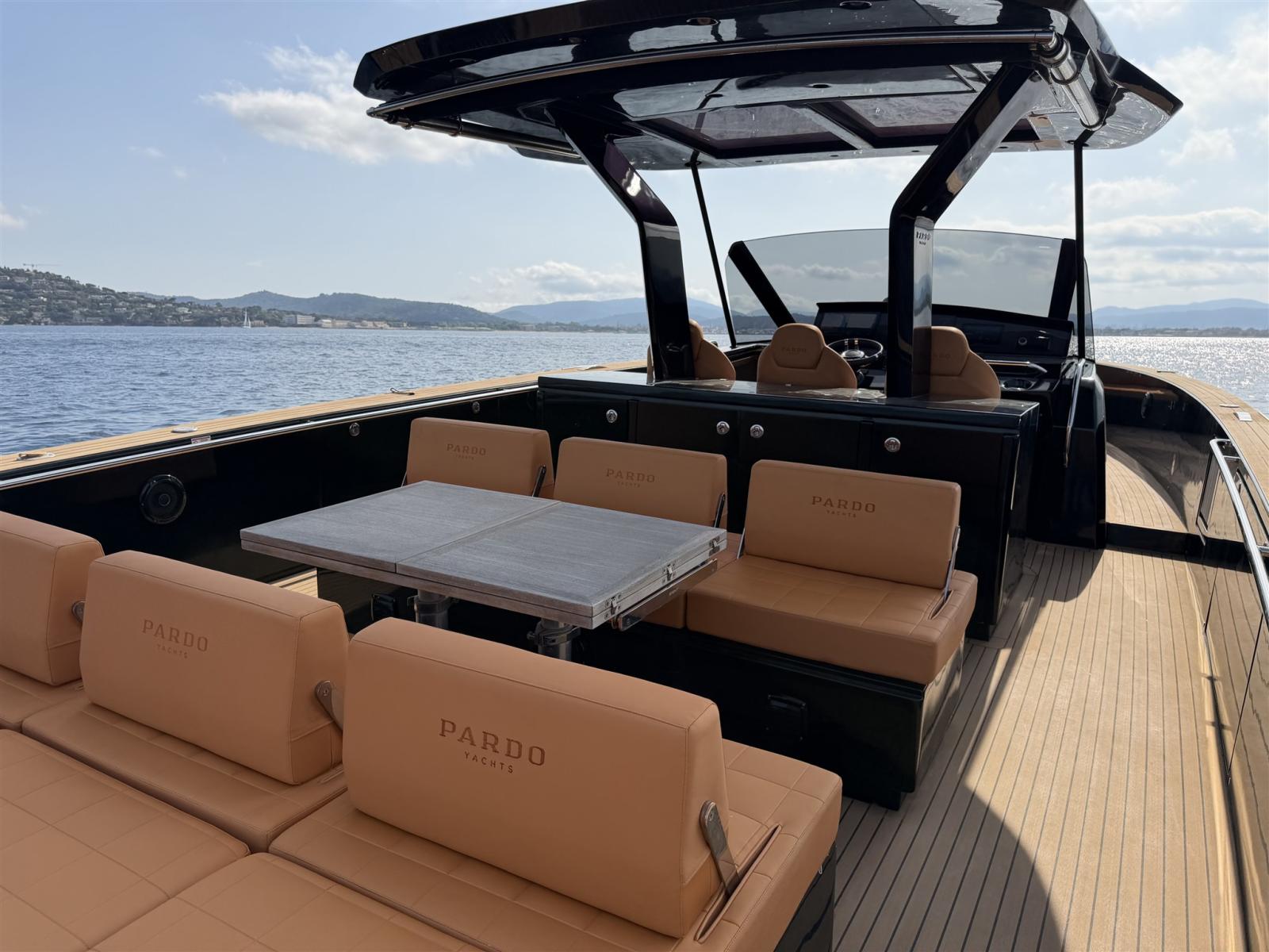 À bord, vous découvrirez la configuration caractéristique des Pardos : de larges ponts de contournement, un cockpit spacieux et un salon magnifiquement aménagé, idéal pour recevoir famille et amis. Le cockpit généreux se connecte parfaitement à la mer grâce à la plateforme de nage hydraulique, rendant la baignade et les activités aquatiques sans effort.
