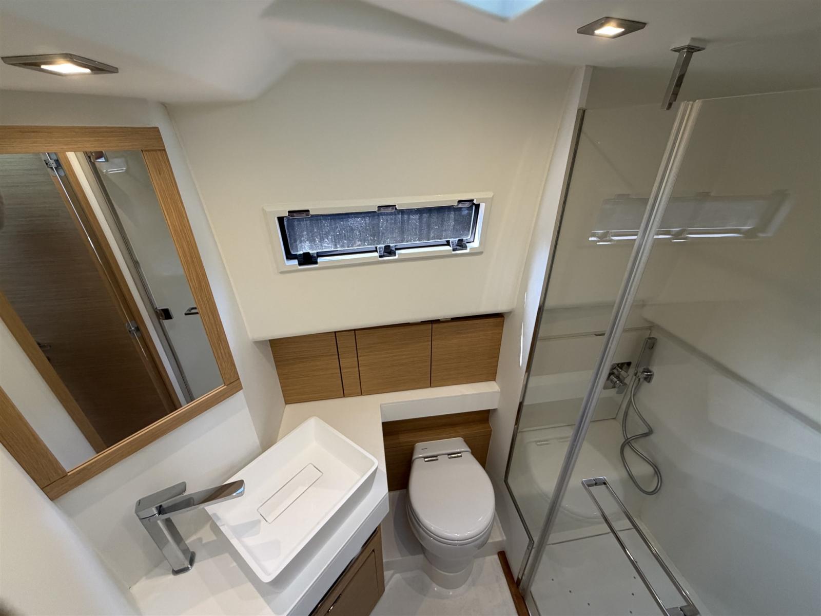 Alarme gaz, Alarme moteur, Alarme de pompe de cale, Aspiration des Eaux Usées depuis le Pont, Auto Dynamic Trim Interceptor, Trim hydraulique, Taquets pliants, Système de vidange, Câble d’alimentation à quai, Douche de cockpit, Fixation de l’ancre, Hard top, Extincteur(s) fixe(s), Lavage de chaine, Lavabo dans le cockpit, Éclairage de courtoisie, Spots sous-marins, Moniteur de batterie, Défenses, Passerelle, Plateforme arrière, Pompe de cale automatique, Pont en teck, Porte latérale, Prise de quai, Guindeau électrique, Echelle de bain, table de cockpit, Corne, T-Top.