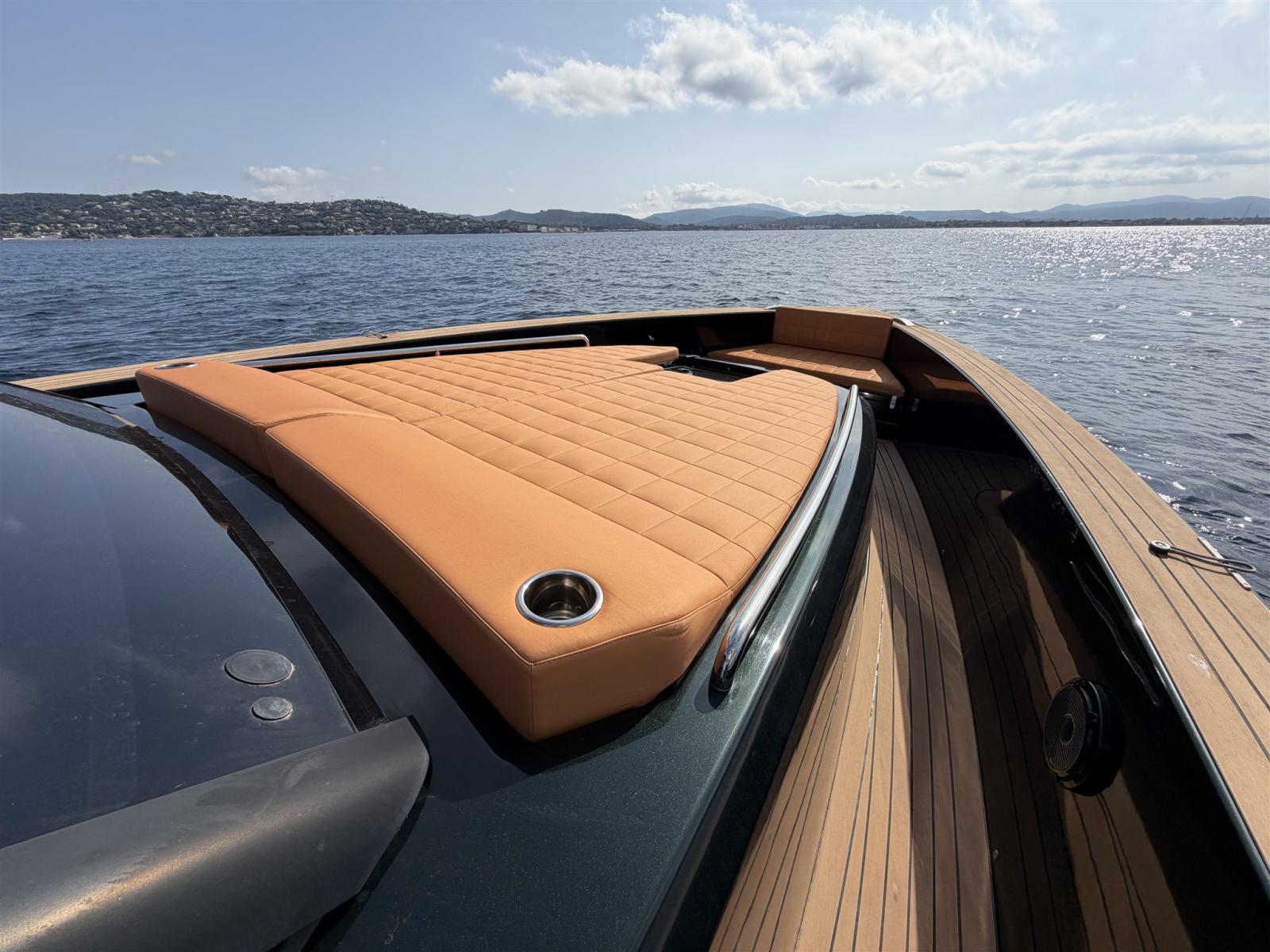 Ce magnifique Pardo 43 2022, nommé Vivaldi avec seulement 75 heures de service, est un yacht de luxe exceptionnellement bien équipé qui combine parfaitement design italien, performance et confort. Elle se distingue immédiatement grâce à sa couleur unique et élégante Audi Tiefgrün, une finition rare et sophistiquée qui confère à cette Pardo une présence véritablement distinctive sur l’eau.