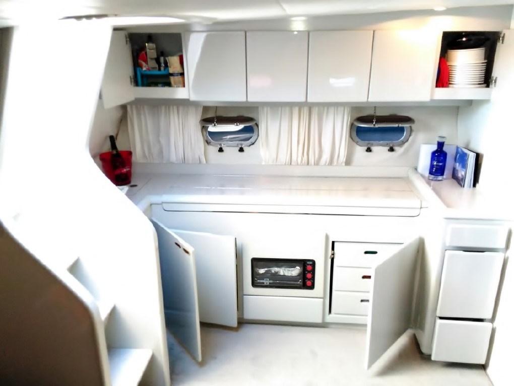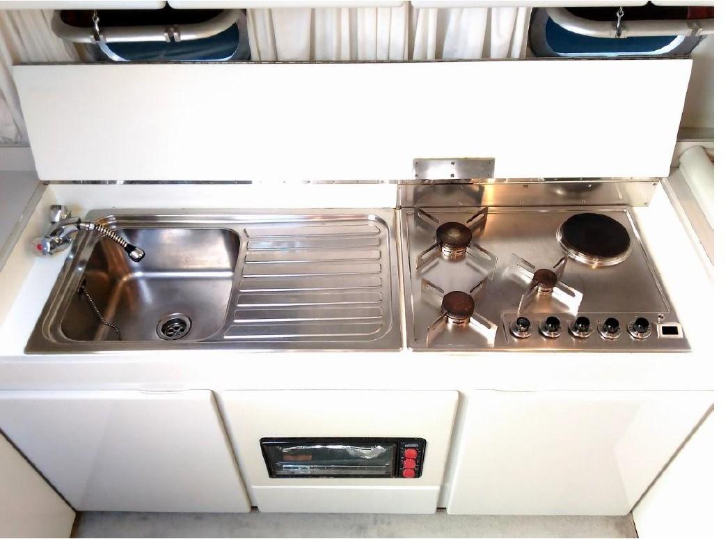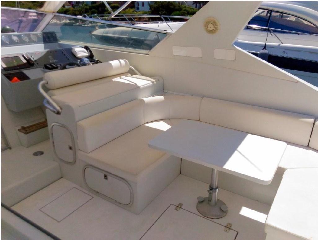 Alarme moteur, Eau sous pression, 4 Batteries (700ah), Douche de cockpit, 2 Flaps hydrauliques, Extincteur(s) fixe(s) (sala macchine), Indicateurs de flaps (non funziona), Lavabo dans le cockpit, Éclairage de courtoisie, Passerelle (idraulica Besenzoni con telecomando), Plateforme arrière, Pompe de cale automatique, Prise de quai, Connexion eau sous pression à quai, Onduleur (nuovo 2014), Rollbar, Guindeau électrique, Echelle de bain, table de cockpit, Table pliante de salon, Corne.