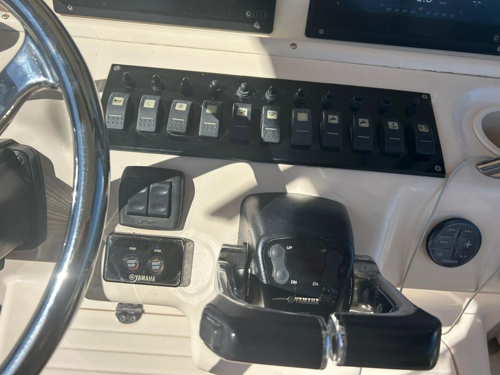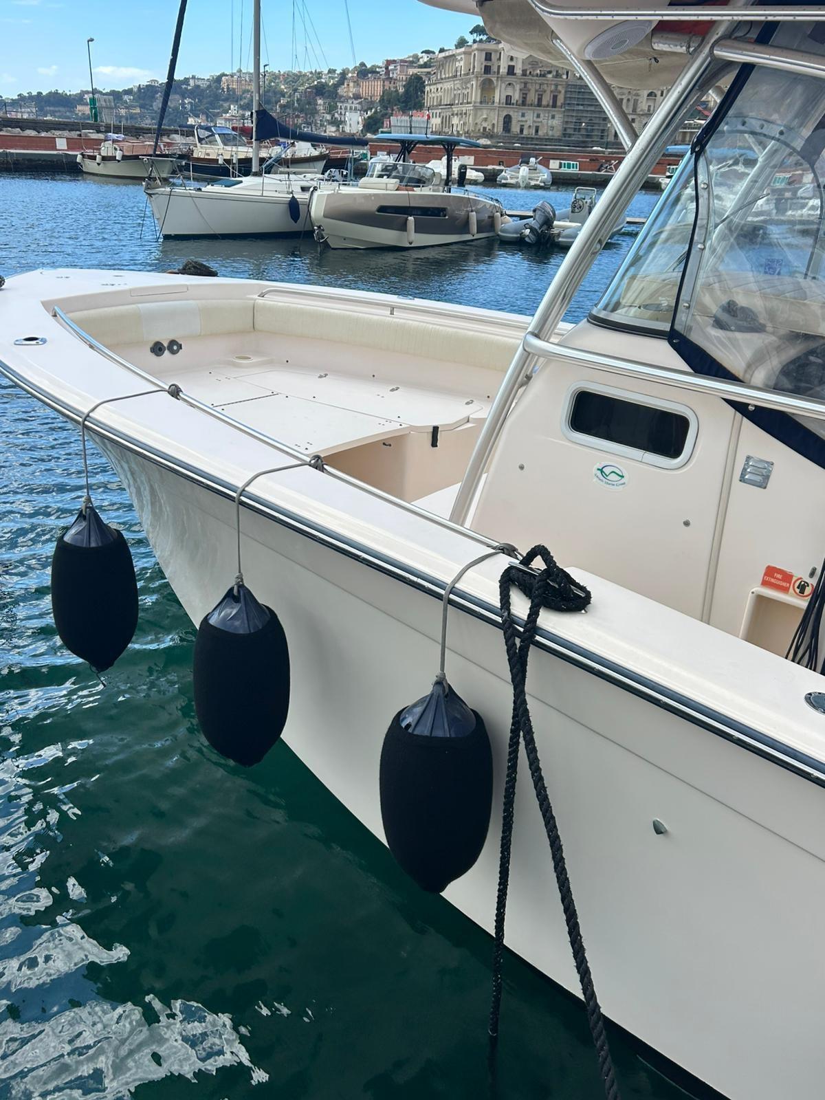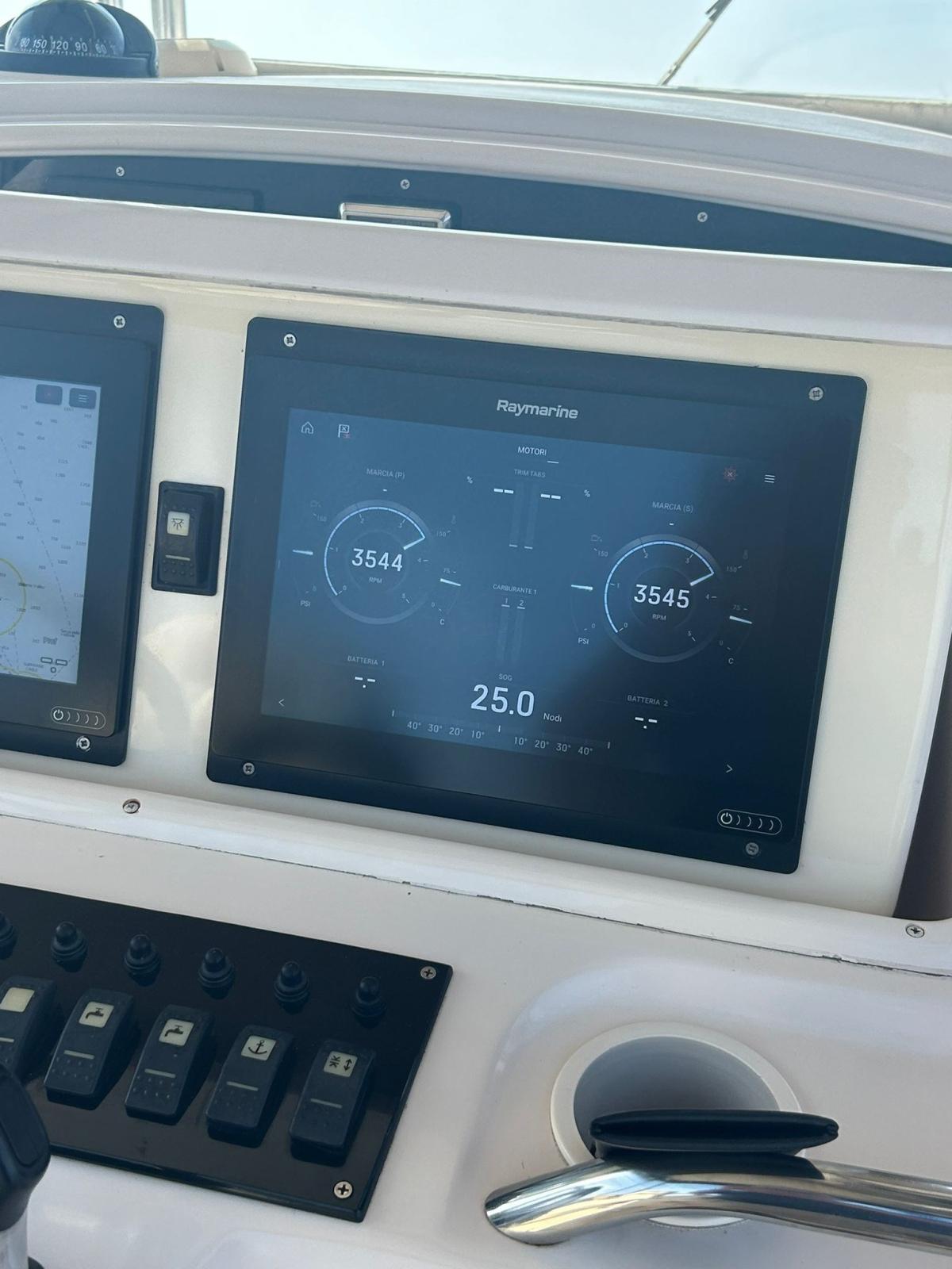 Alarme moteur, 4 Batteries (nuove 2024), Douche de cockpit, Panneau solaire, Plateforme arrière, Guindeau électrique, Echelle de bain, Corne, T-Top.