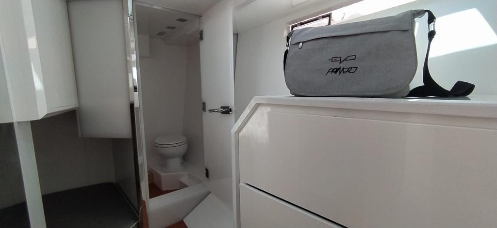 Alarme moteur, Alarme de pompe de cale, Ouverture du compartiment moteur électrique, Eau sous pression, Trim hydraulique (Auto dynamic trim interceptor), Taquets pliants, Passavant en teck, Douche de cockpit, Flaps hydrauliques, Extincteur(s) fixe(s), Indicateurs de flaps, Lavabo dans le cockpit, Éclairage de courtoisie, Spots sous-marins, Plateforme arrière (Trasformer di poppa + estensione murate), Pompe de cale automatique, Porte latérale, Cockpit en teck, Prise de quai, Connexion eau sous pression à quai, Guindeau Hydraulique, Echelle de bain, table de cockpit (a scomparsa), Table pliante de salon, Corne, T-Top (con estensione elettrica).