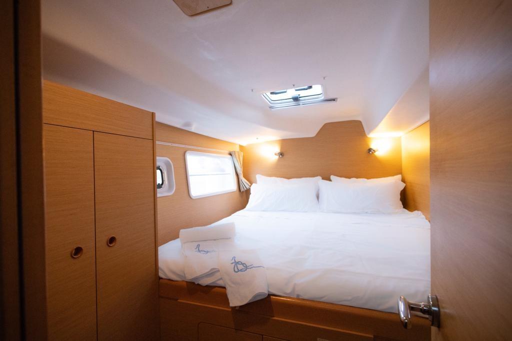 4 cabines 2 salles de bain + 2 cabines d’équipage + toilettes