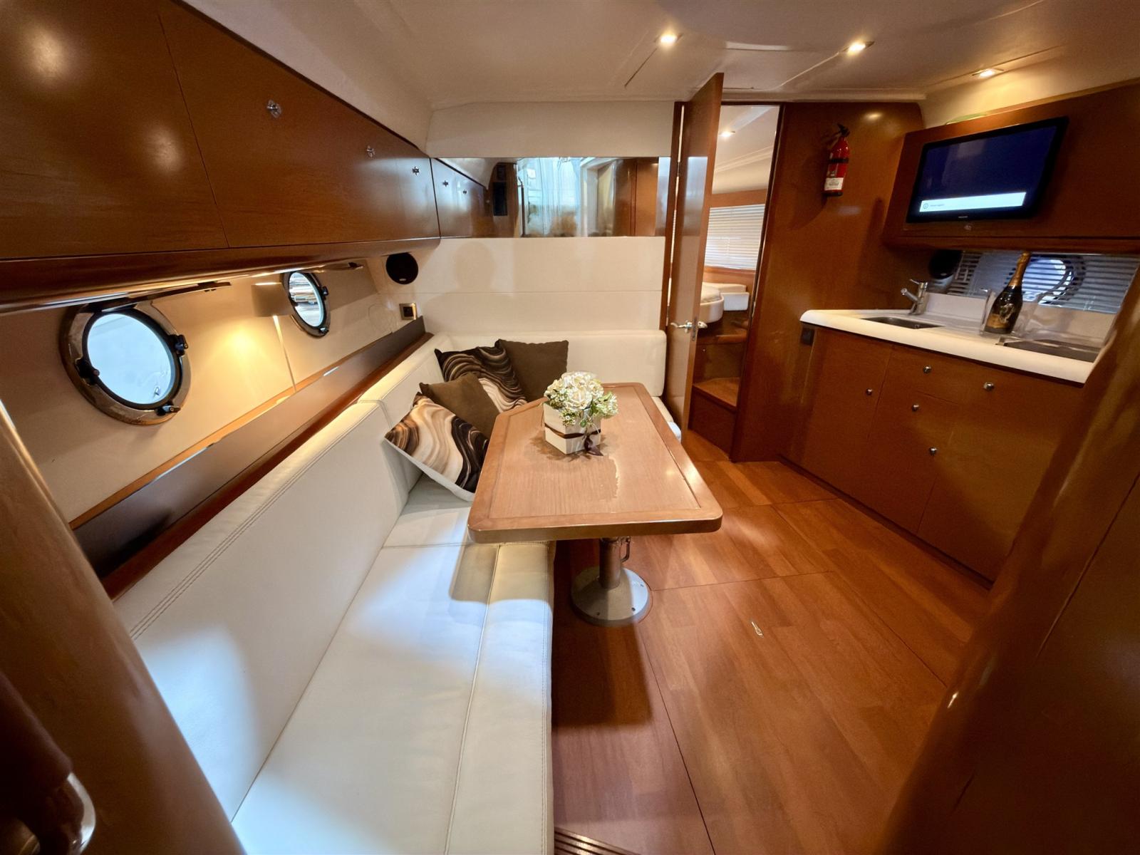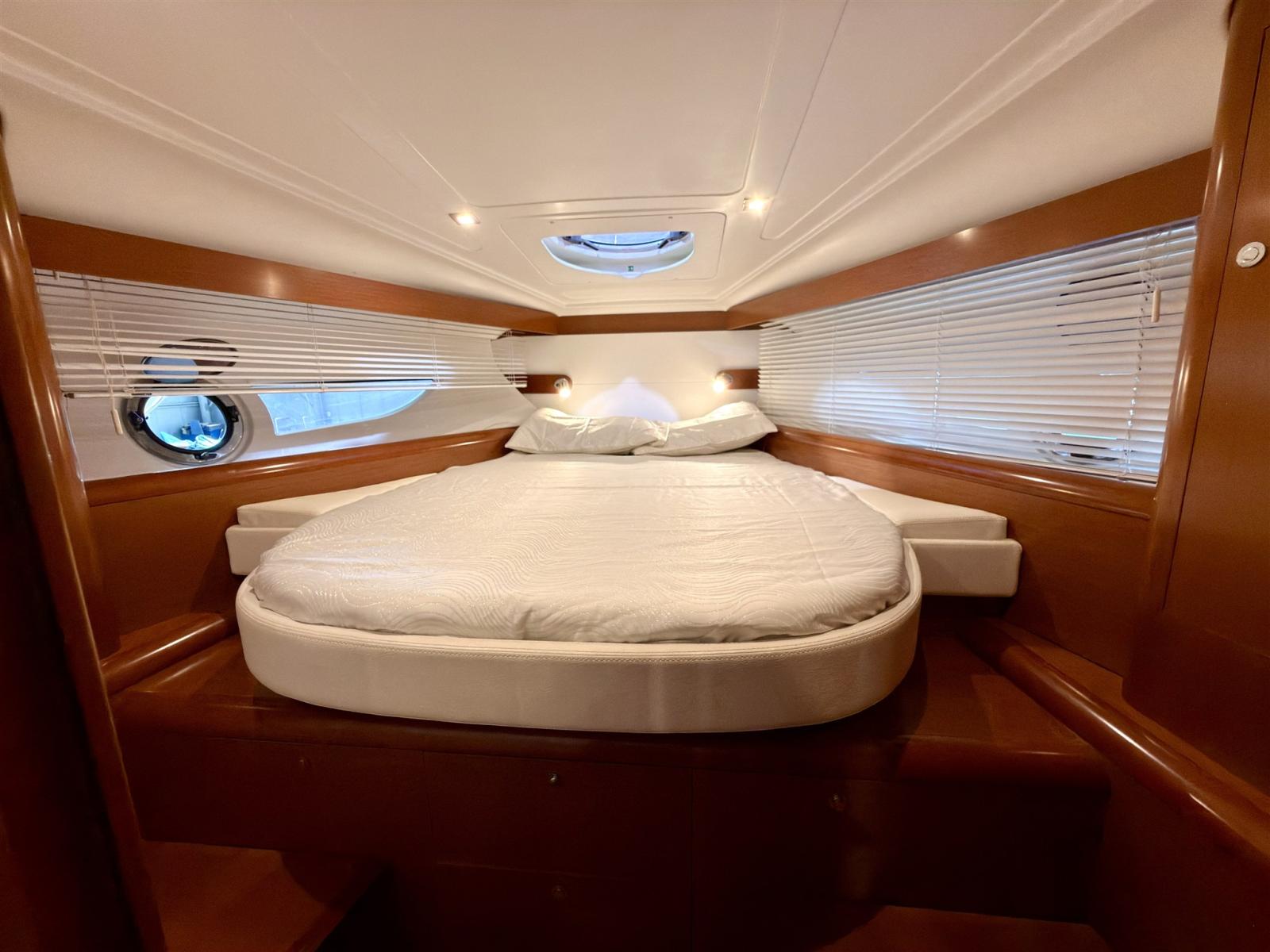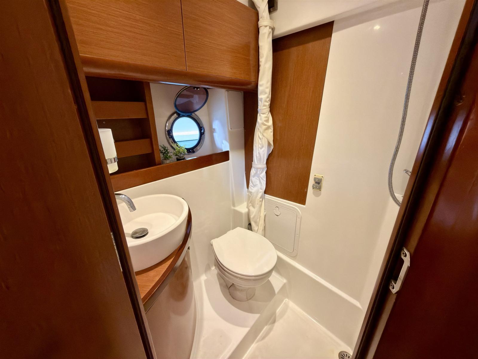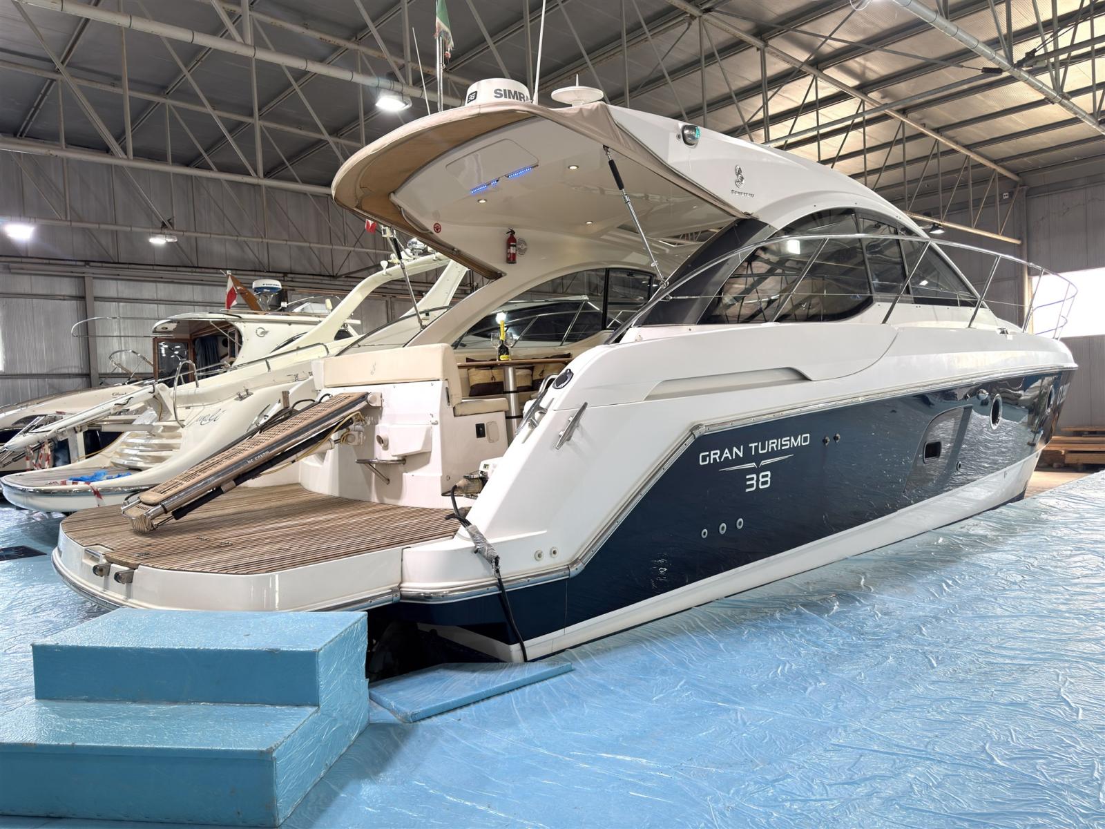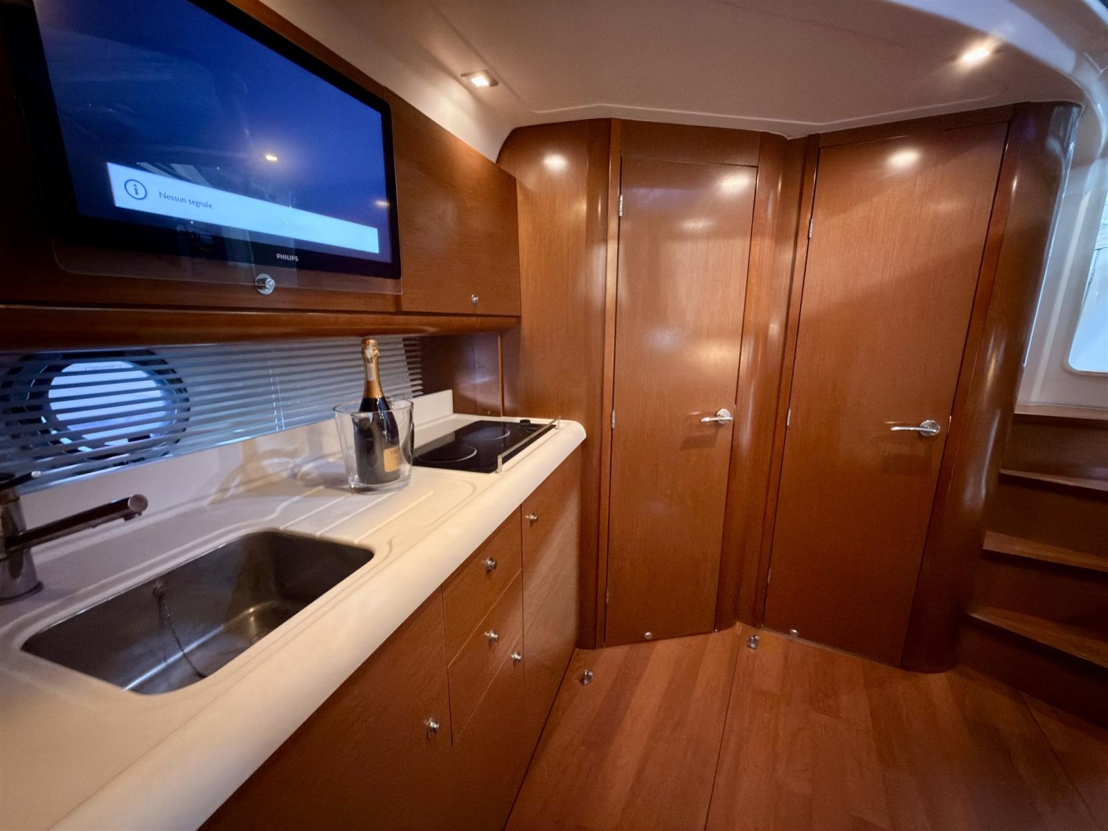 Couleur spéciale (Fiancate blu), Flaps électriques, Hard top (Apertura elettrica), Lavabo dans le cockpit, Spots sous-marins, Moniteur de batterie (e impianti), Passerelle (Idraulica), Plateforme arrière (Allungata con fondo in teak), Cockpit en teck, Guindeau électrique, Annexe (Honda non motore).