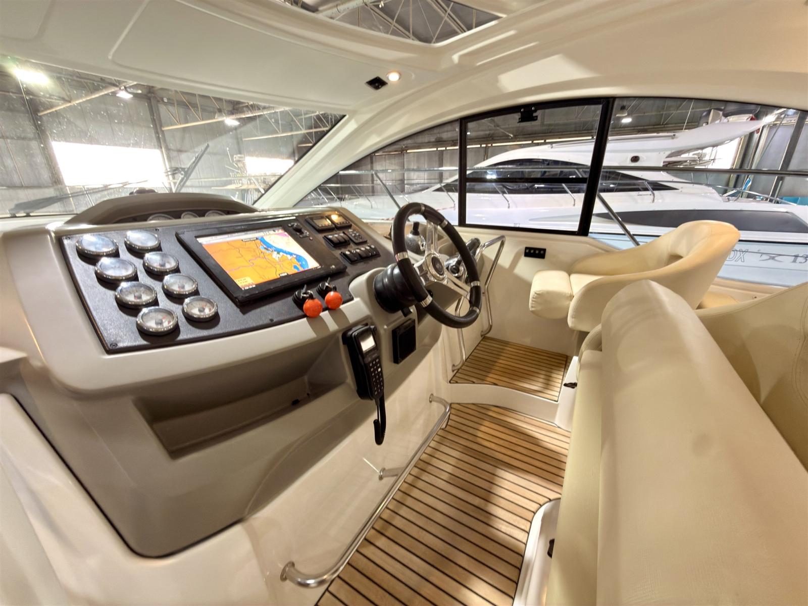 Indicateur d'angle de barre, Antenne radar (Simrad), Commande électrique, 2 Ordinateur fixe de bord (Volvo Penta controllo motori), Moniteur (SIMRAD multifunzione: Plotter cartografico - Radar - Pilota automatico - Eco), Joystick (di manovra Volvo Penta), Moniteur de consommation, Pilote automatique (Simrad), Radio VHF (Simrad RS82), Siège copilote.