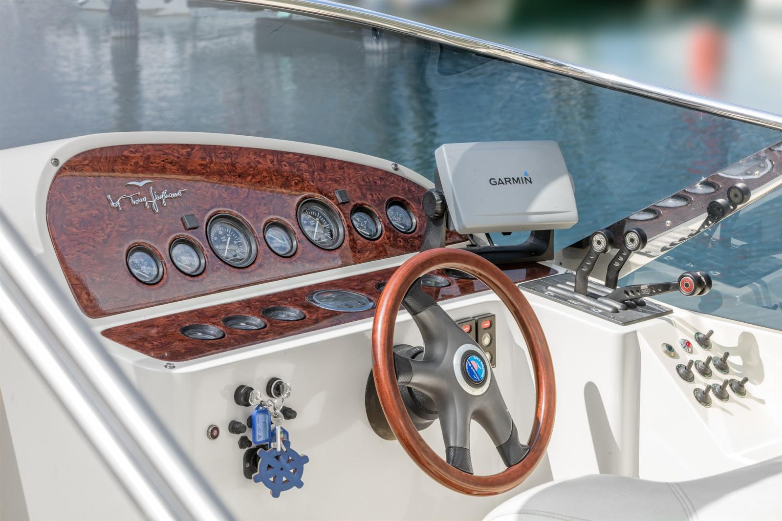 Eau sous pression, 3 Batteries, Douche de cockpit, Plateforme arrière, Pompe de cale automatique, Cockpit en teck, Guindeau électrique, Corne.