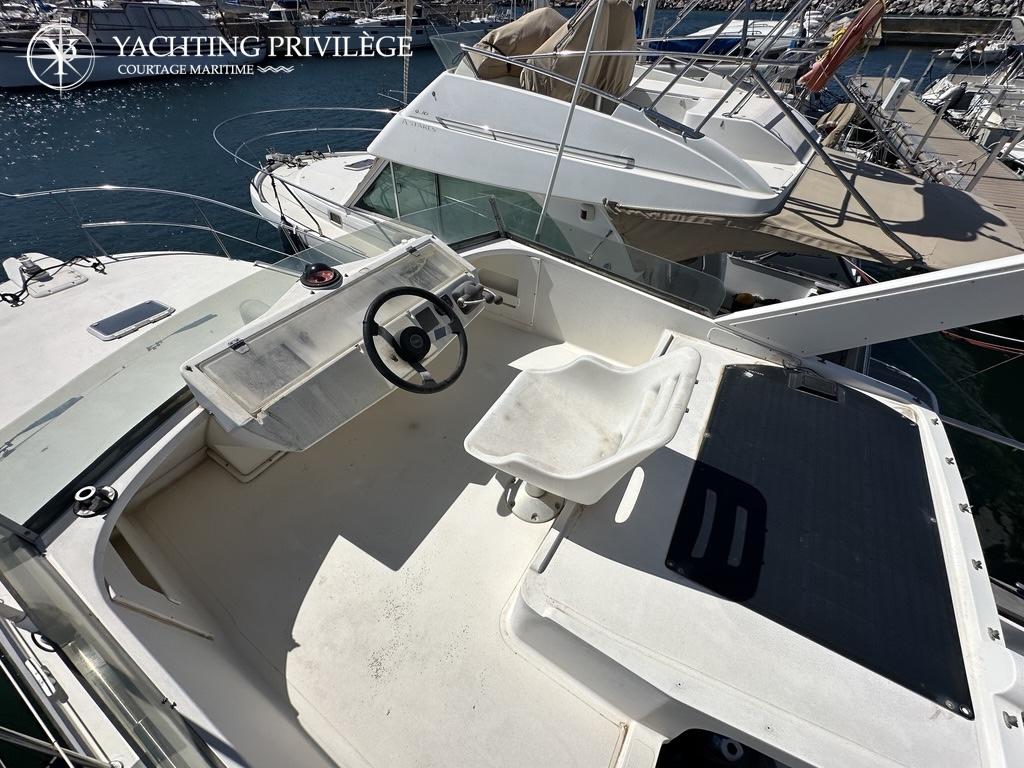 Le bateau est équipé d’une VHF, GPS, sondeur, traceur, radar, pilote-automatique, chargeur de batterie, circuit 12V et 220 V, guindeau électrique, flaps, radio-CD, télévision…