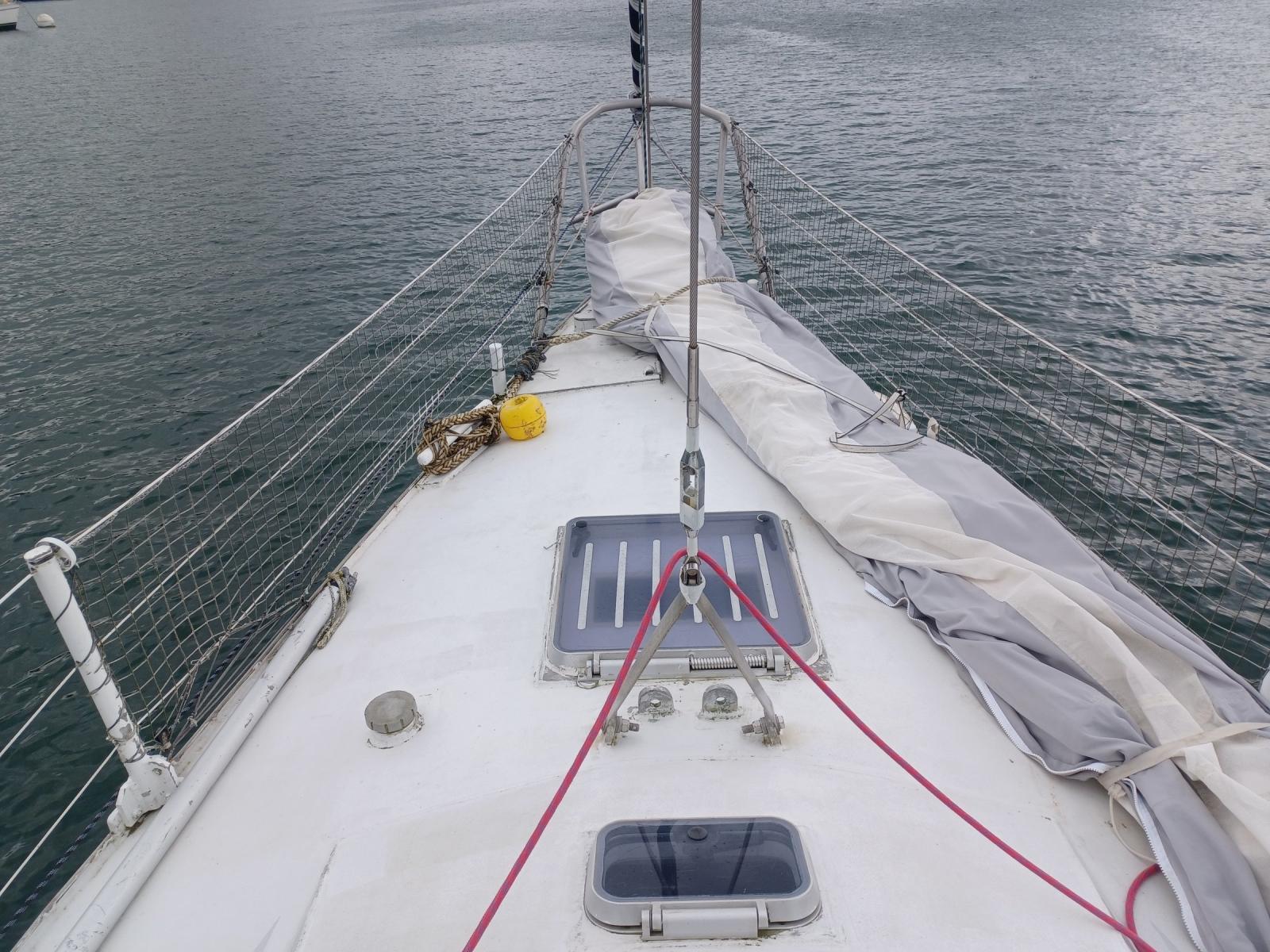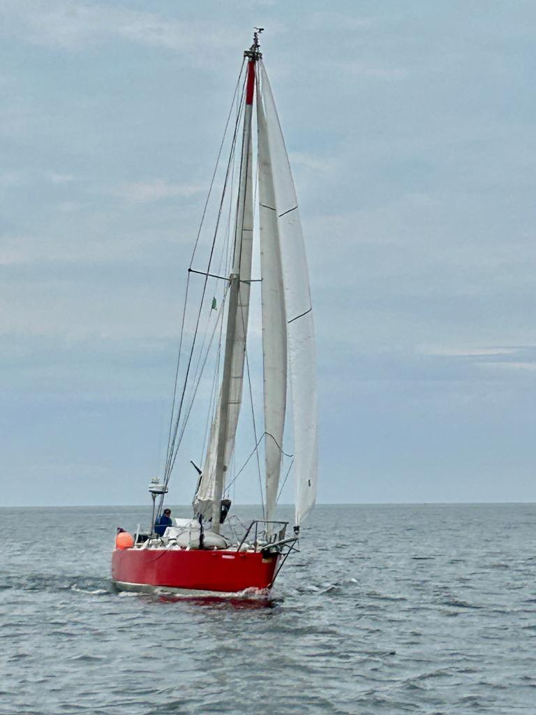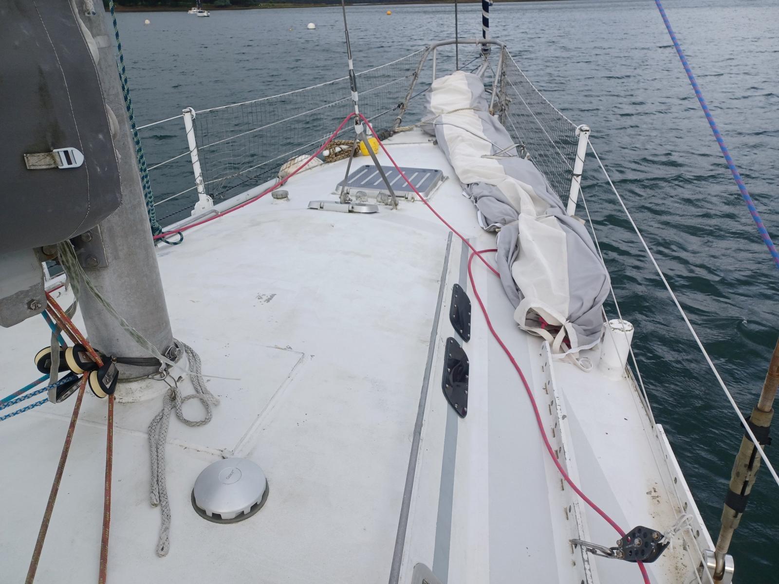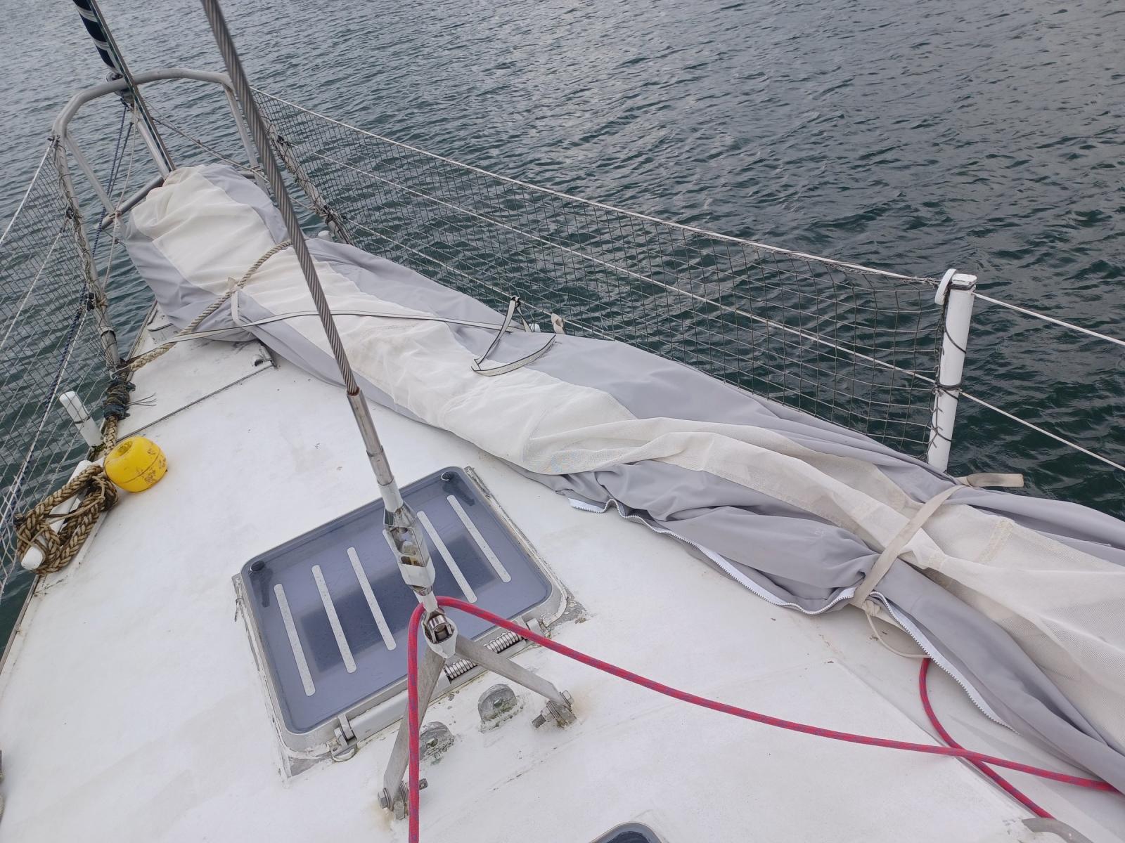 VOILES : 1 GV neuve (2024) 2 ris sur chariots, yankee (2023) sur enrouleur, solent 1 ris avec sac banane, inter, tourmentin.
