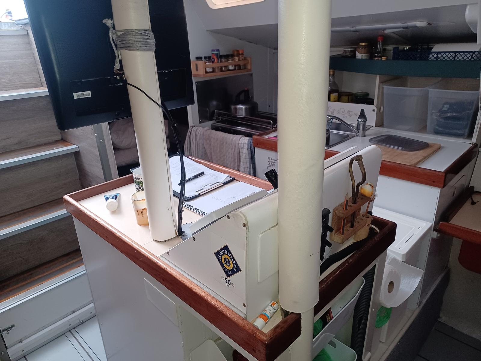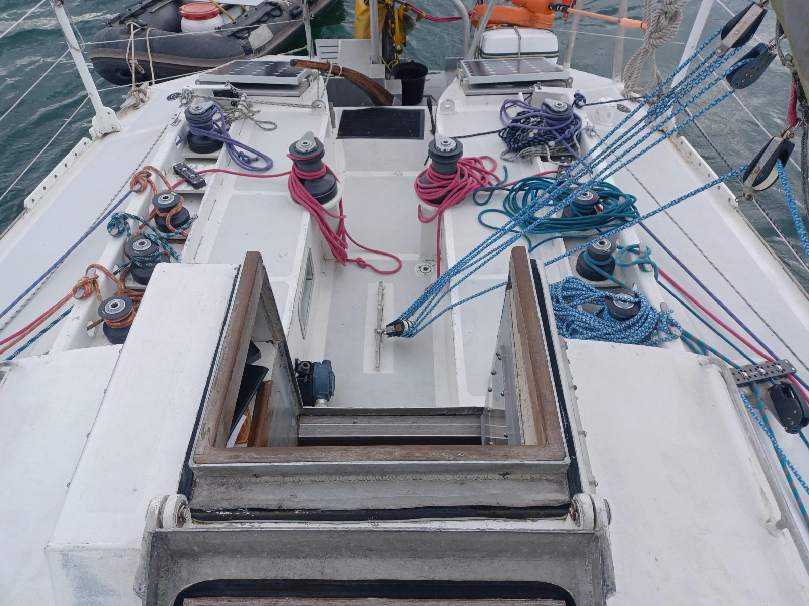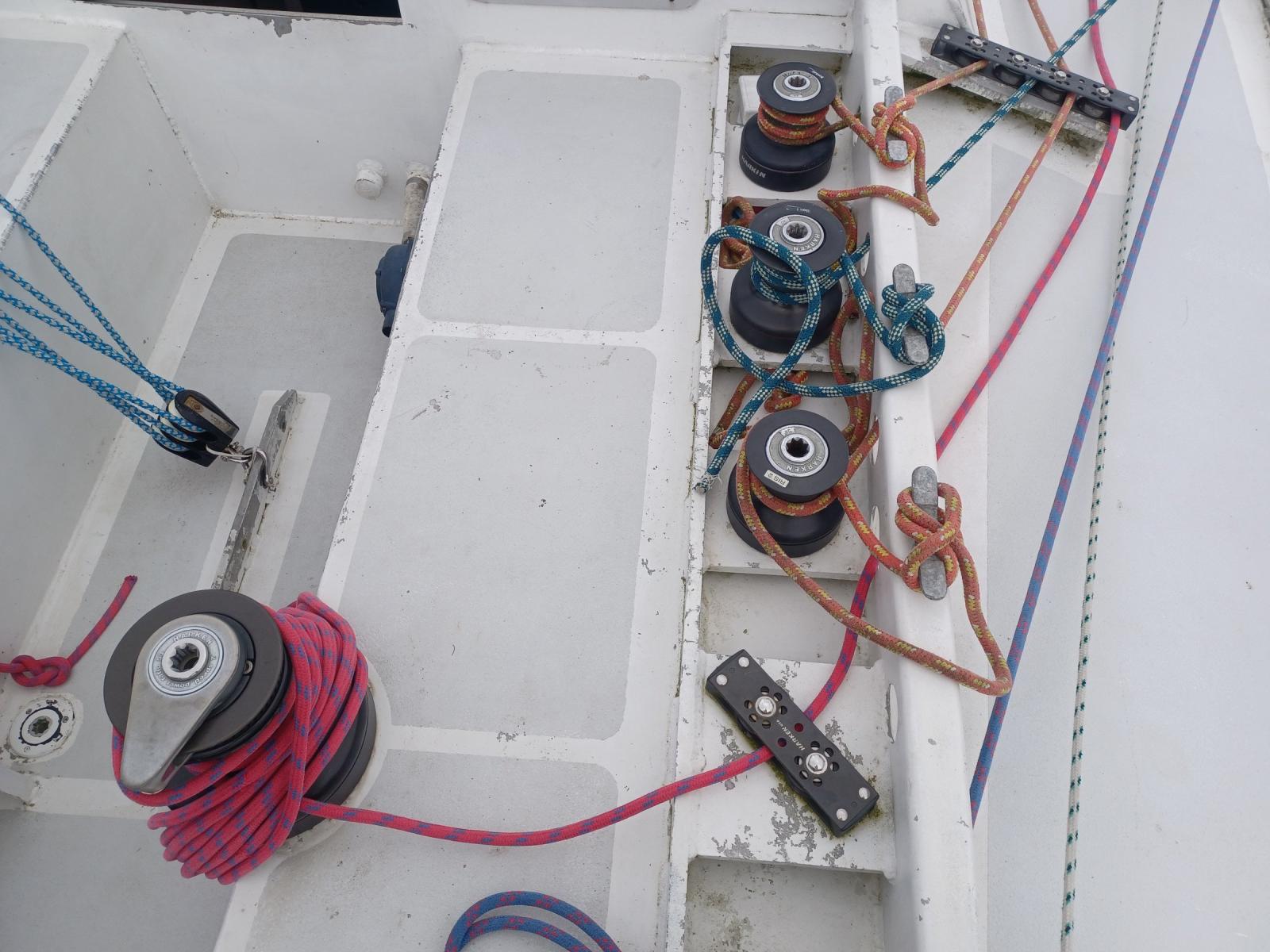 ÉLECTRONIQUE : Pilote auto Autohelm 6000 avec vérin hydraulique, Autohelm Multi, Autohelm Wind, sondeur Raymarine ST40, détecteur de radar Mer Veille, émetteur récepteur AIS classe B, récepteur AIS Simrad, radar Furuno, fax similé Furuno, VHF Navicom RT650 + 1 portable.
