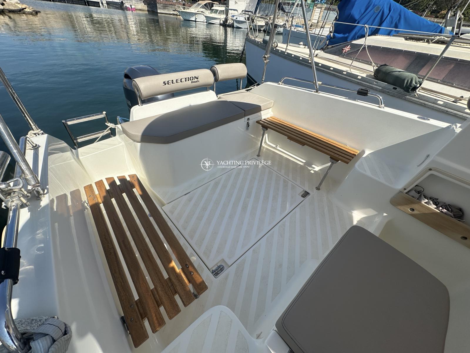 Le bateau est équipé d’un GPS, sondeur, loch-speedo Humminbird, bimini, porte canne, sellerie extérieure, douchette de cockpit, échelle de bain, carré transformable…