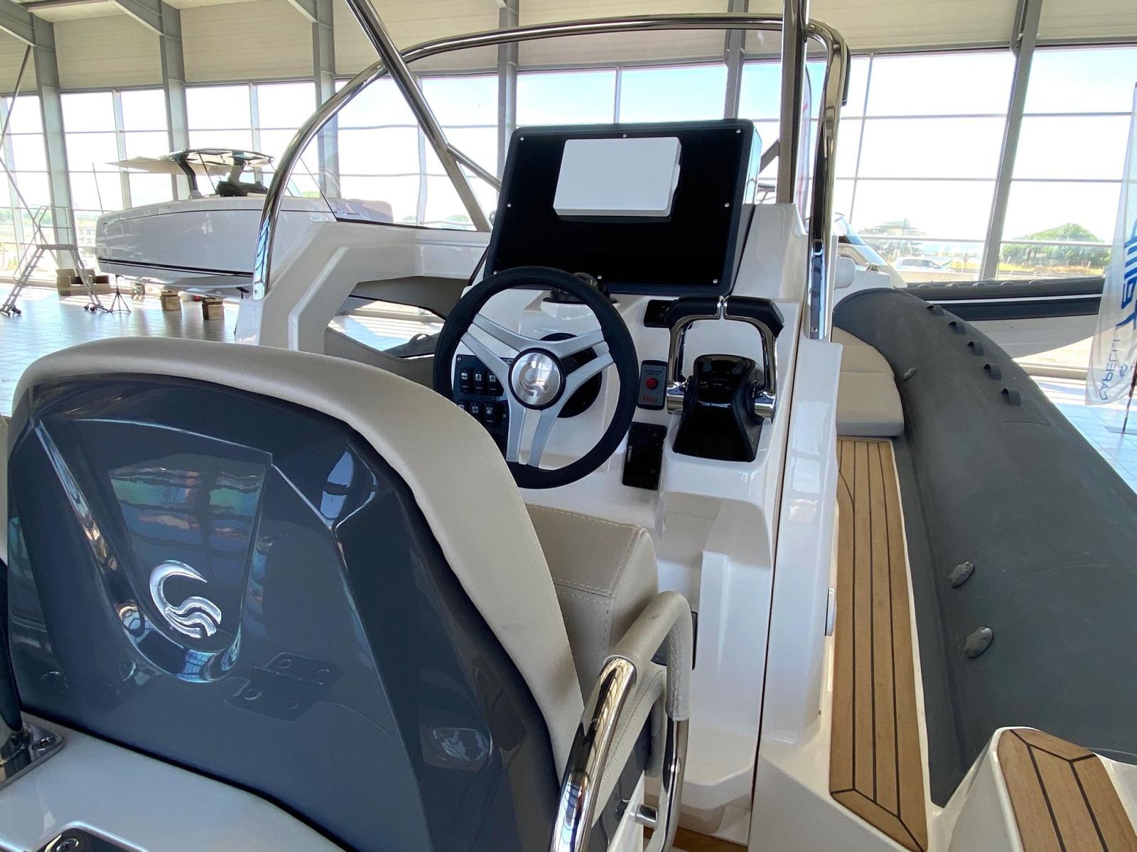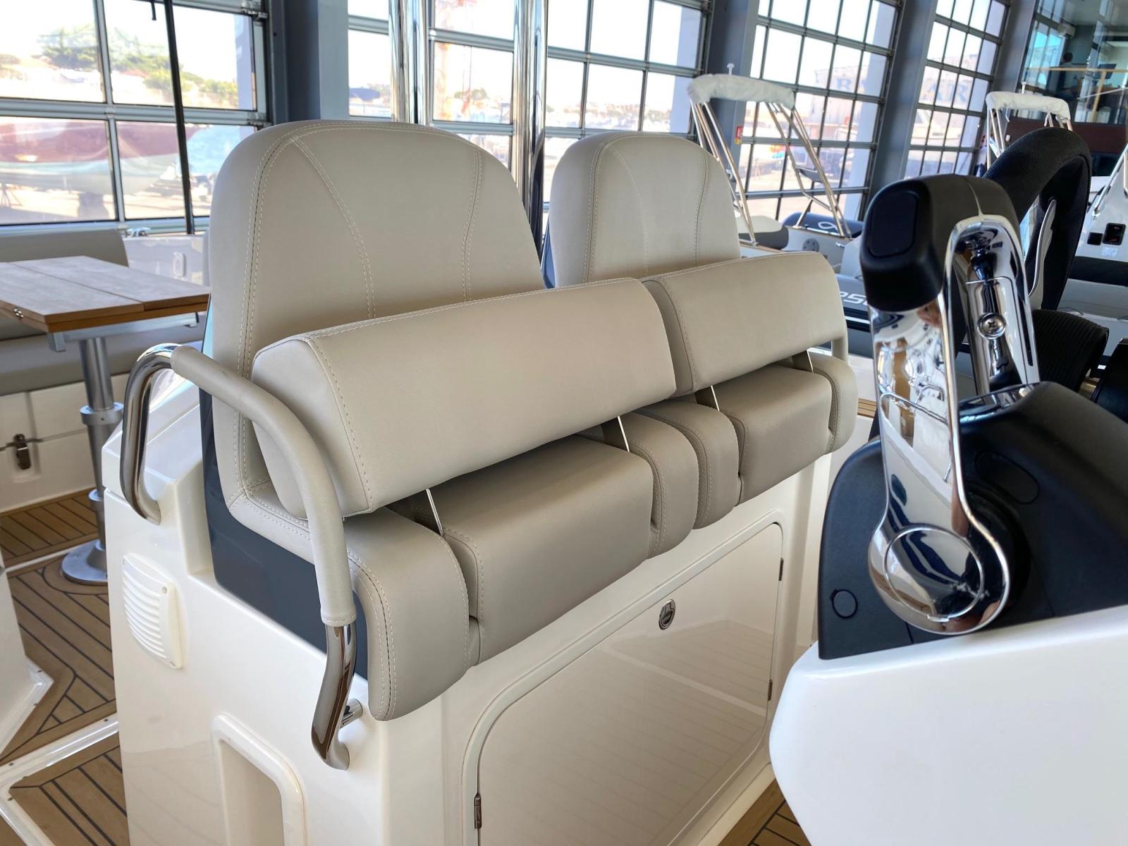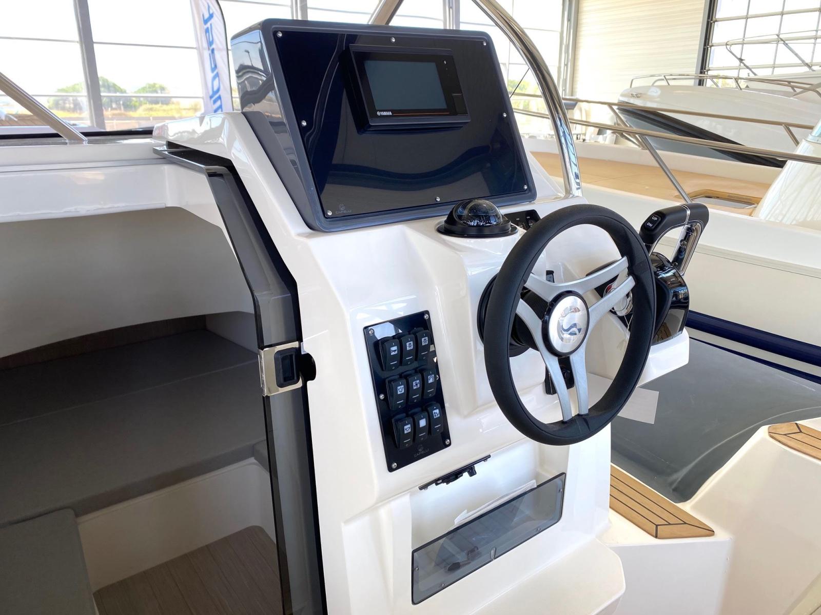 Ce modèle est très équipé : propulseur d'étrave, T-top, flexiteck cockpit, GPS Sondeur GARMIN, VHF, compteur de chaîne ...
