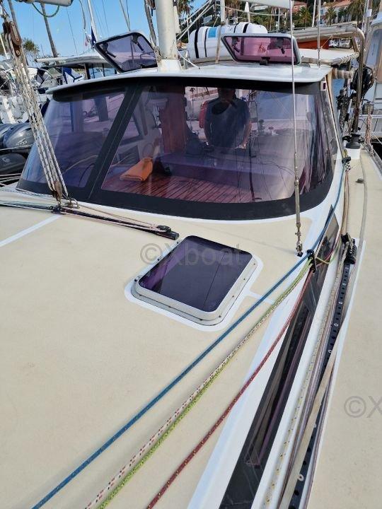Elle est équipée de bossoirs : ketch avec une voile d’artimon sur enrouleur, une GV équipée de trois ris avec un hale-bas rigide, un génois sur enrouleur, un étai largable. La garde-robe comprend un foc à ris, une trinquette, un tourmentin, ces voiles se gréant sur , 2 spis symétriques (un léger et un lourd) et un spi asymétrique avec sa chaussette. :