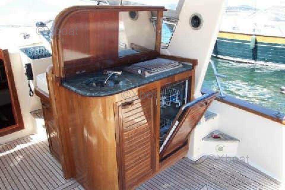 Entretenu par marin. Pont teck entièrement refait à neuf en 2017. Electronique neuve 2019 + toutes lampes LED, water lights 2020, bateries neuves 2019 ainsi que tauds, bimini, matelas de bain de soleil. 2 frigos neufs 2019 (intérieur et extérieur), à jour antifouling (03-2022) et révision moteurs.