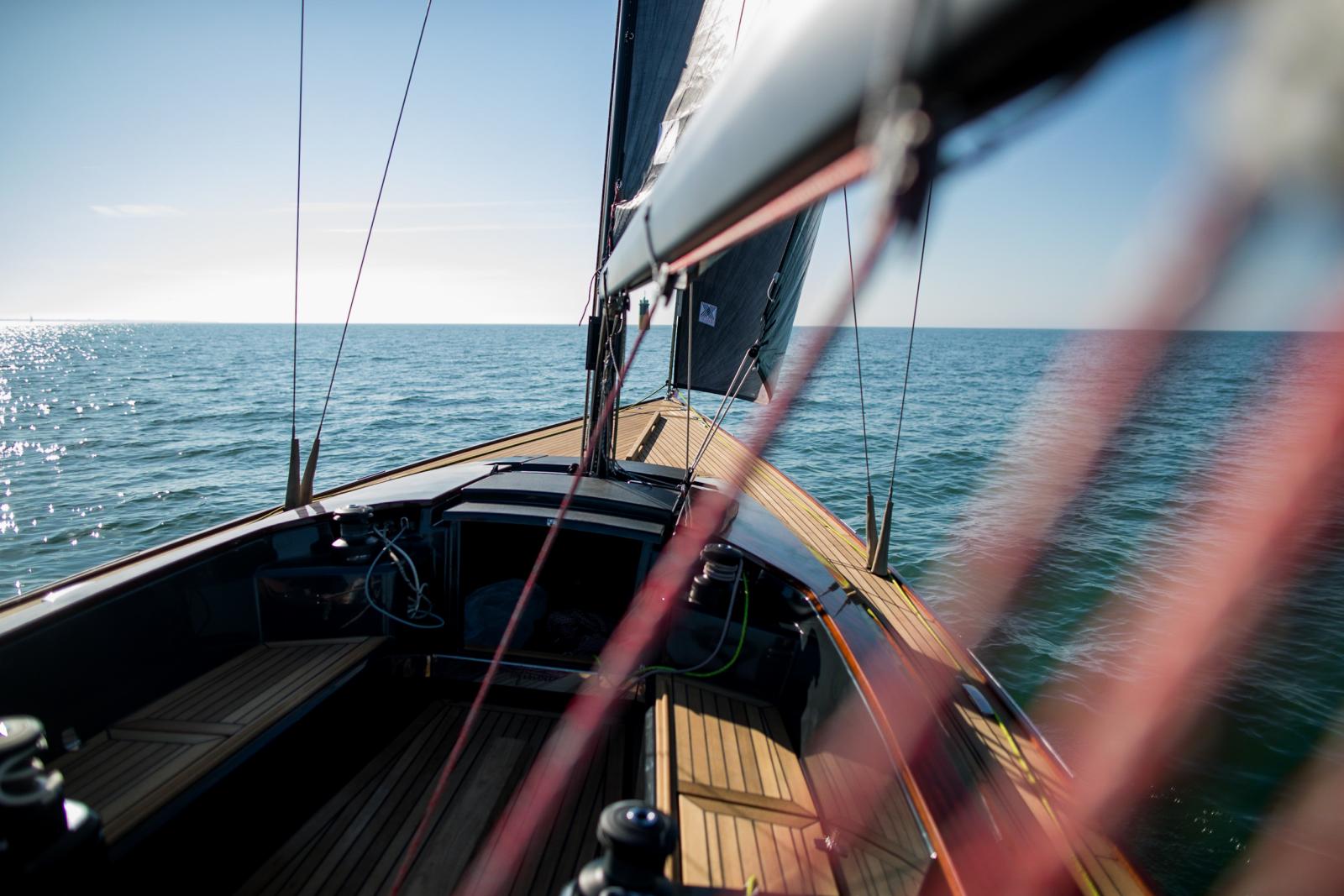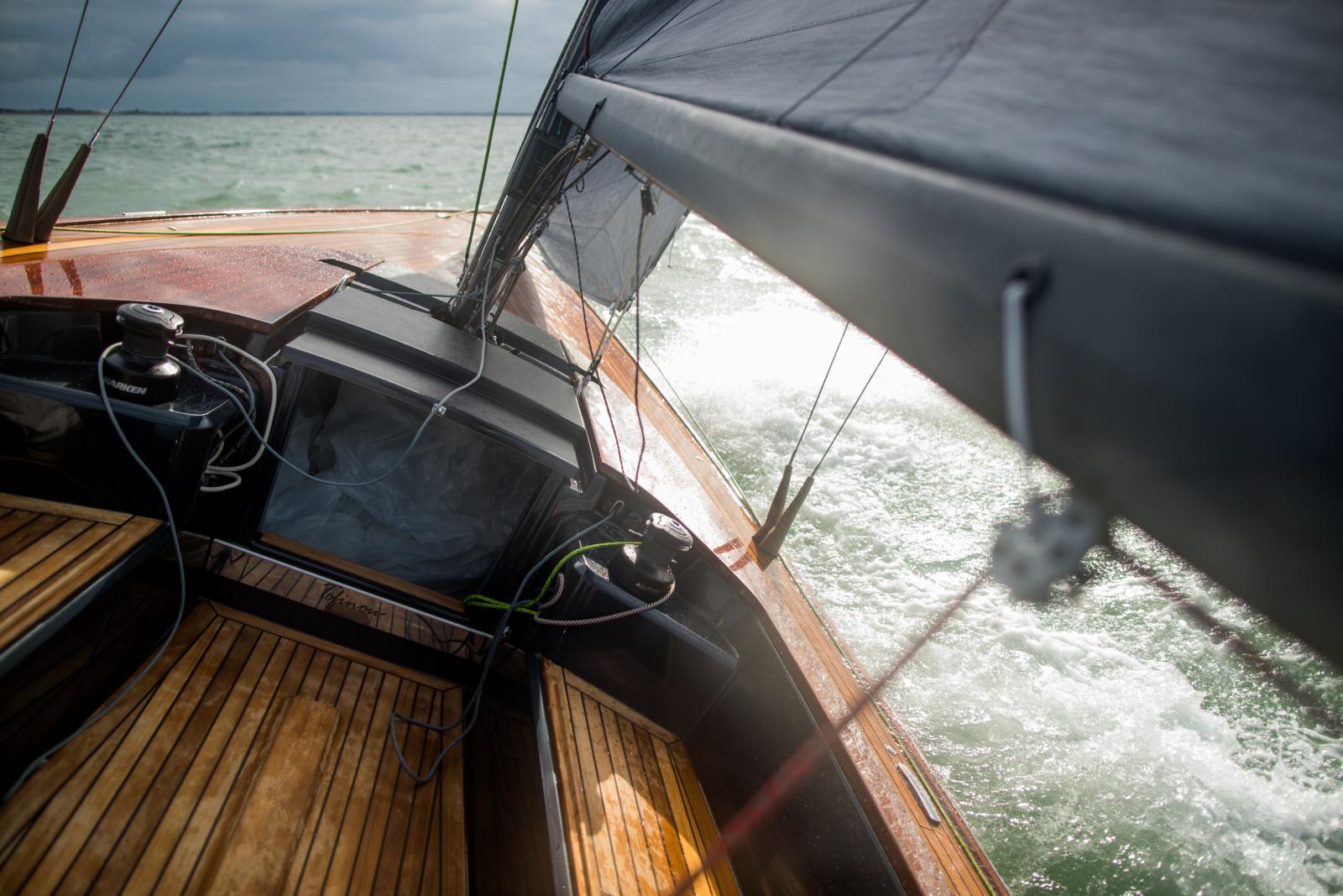 Avec sa coque élancée et son pont en teck, le Tofinou 9.7 séduit au premier regard. Son design intemporel, combiné à des finitions haut de gamme, en fait un modèle d'exception dans l'univers de la voile française.