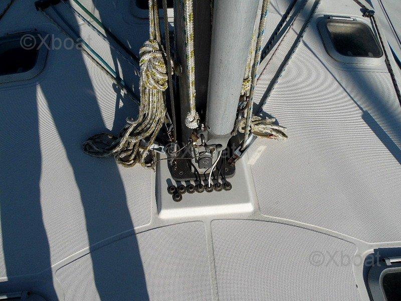 Le Sun Odyssey 42.2 offre un gréement fonctionnel avec grand-voile Dacron, génois sur enrouleur et spi symétrique avec tangon assurant une navigation sûre et confortable. Le gréement dormant a plus de 10 ans.
