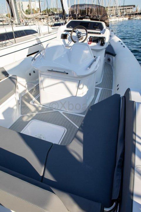XBOAT ref :5727.Certification PNB. Nouveau semi-rigide du chantier naval italien Mirimare Cantieri de 8,8 mètres (PLUS DE 9 AVEC LES PLATEAUX DE BAIGNADE DÉJÀ INCLUS) avec des performances incroyables et un style sportif. Flambant neuf (mai 2023) avec un Suzuki DF300hp avec de nombreux extras en option.