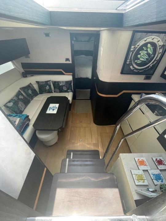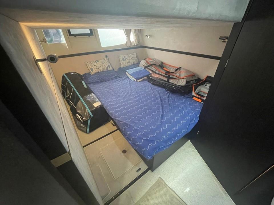 La cabine principale est un véritable sanctuaire, avec un lit confortable et un agencement bien pensé qui maximise l'espace disponible. Les cabines d'invités ne sont pas en reste, offrant tout le confort nécessaire pour des séjours prolongés à bord. La cuisine entièrement équipée permet de préparer des repas gourmands, que vous pourrez savourer à l'intérieur ou sur le pont arrière.