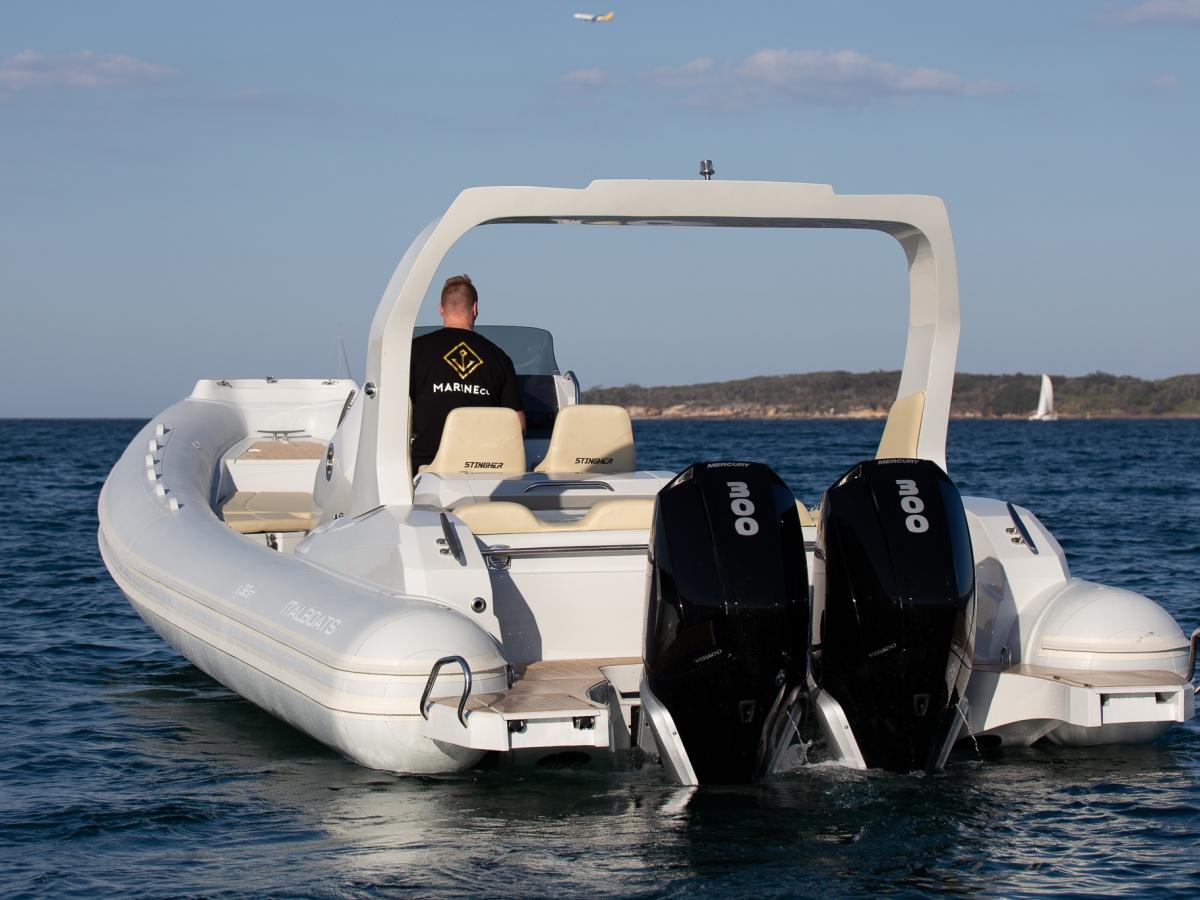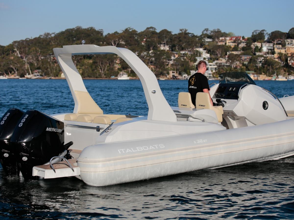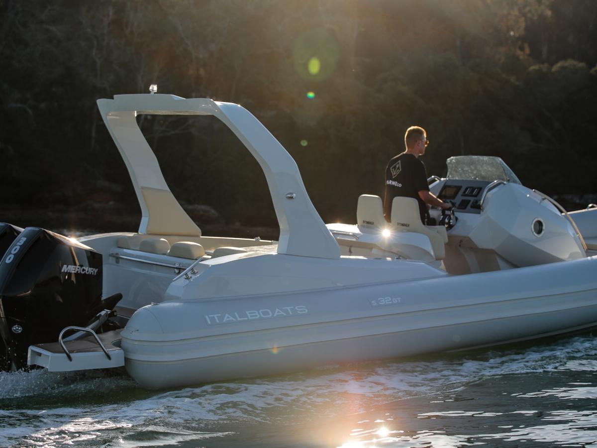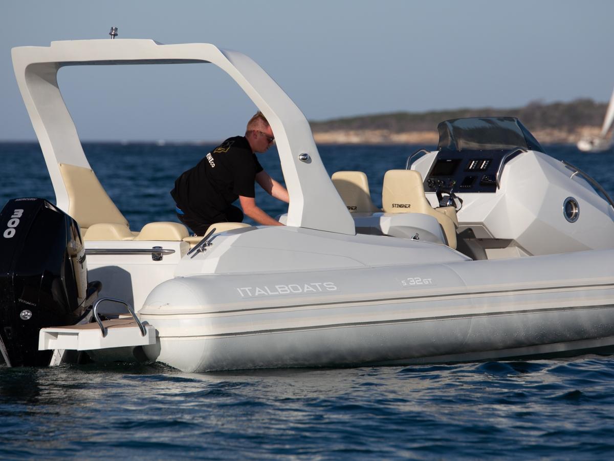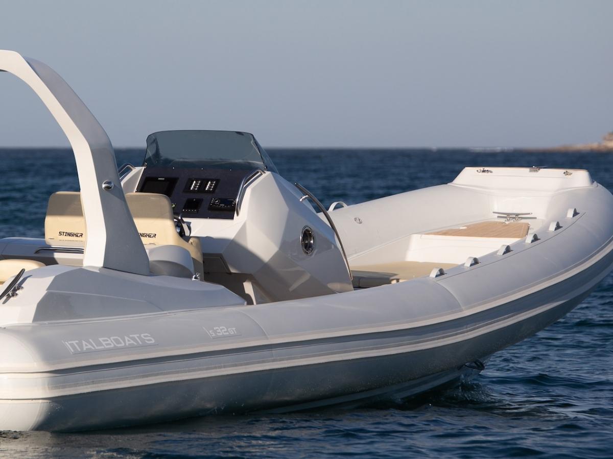 Le Stingher 32 GT est le vaisseau amiral de la gamme GT conçu par la marque italienne Italboats. Ce semi-rigide de 9,60 mètres allie performances, maniabilité et confort, offrant une expérience de navigation exceptionnelle grâce à ses équipements à la pointe de la technologie. Personnalisez-le selon vos préférences grâce à un large choix d'options, de coloris et de designs.