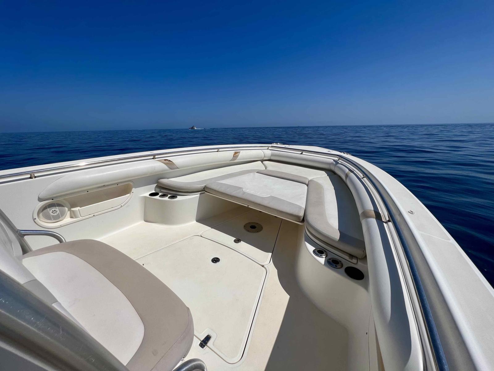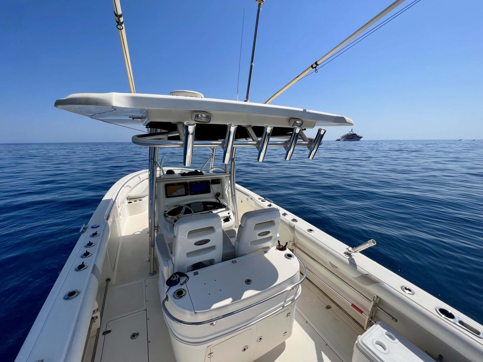 D’une longueur de 9.80 m, ce modèle 2007 est motorisé par Mercury (275 CV) .