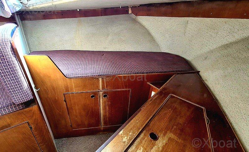XBOAT ref :5906.L’AMERGLASS 32 AK est une vedette à moteur réputée pour son confort et sa solidité, construite en 1974 par le chantier naval hollandais Amerglass. Ce modèle est idéal pour les croisières côtières ou fluviales, avec une coque en polyester (GRP) offrant une grande résistance. Longue de 9,14 mètres et large de 3,10 mètres, elle dispose d’une configuration optimale pour un usage familial ou de plaisance.