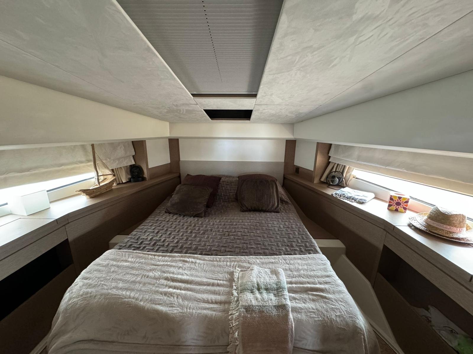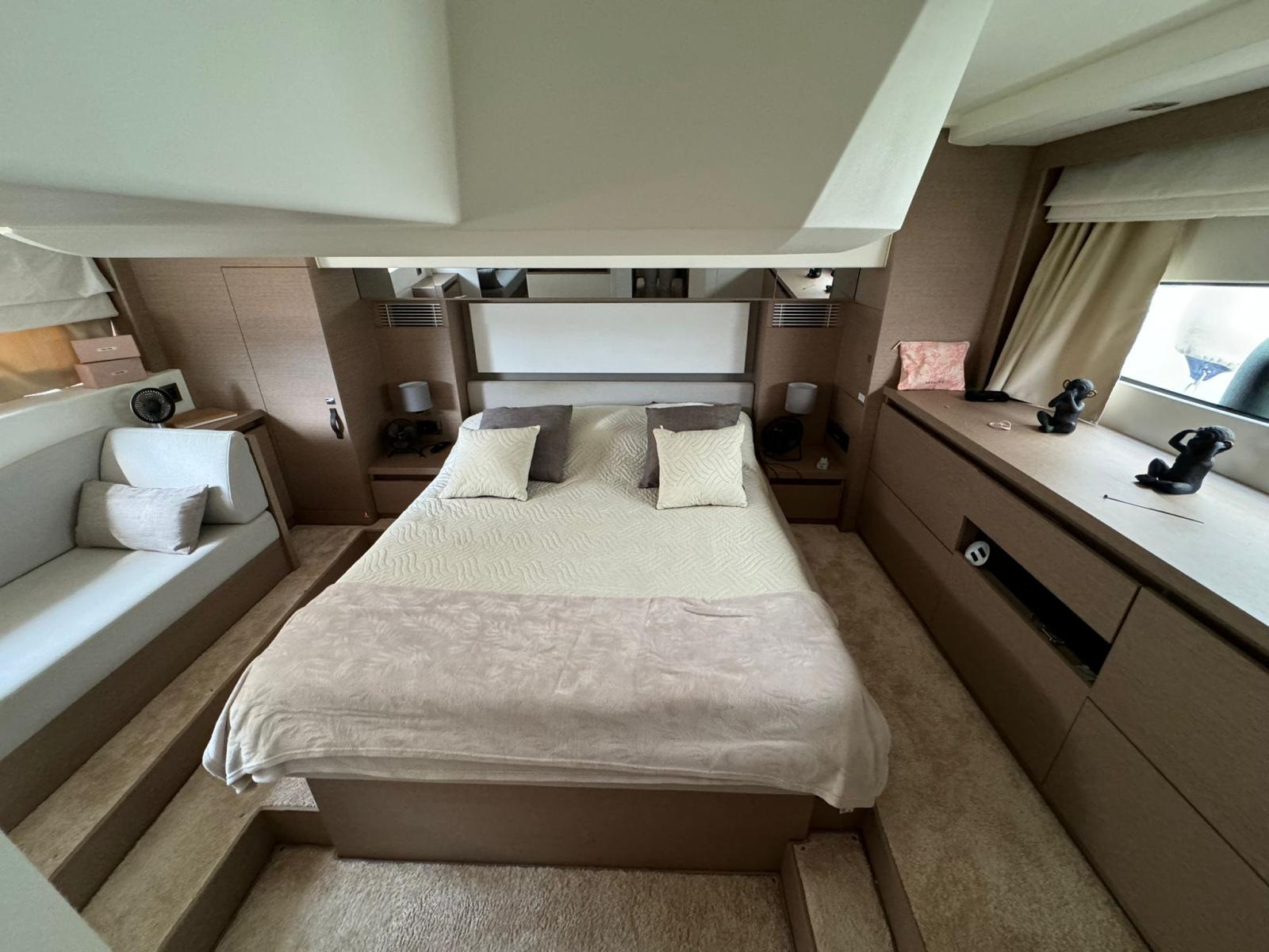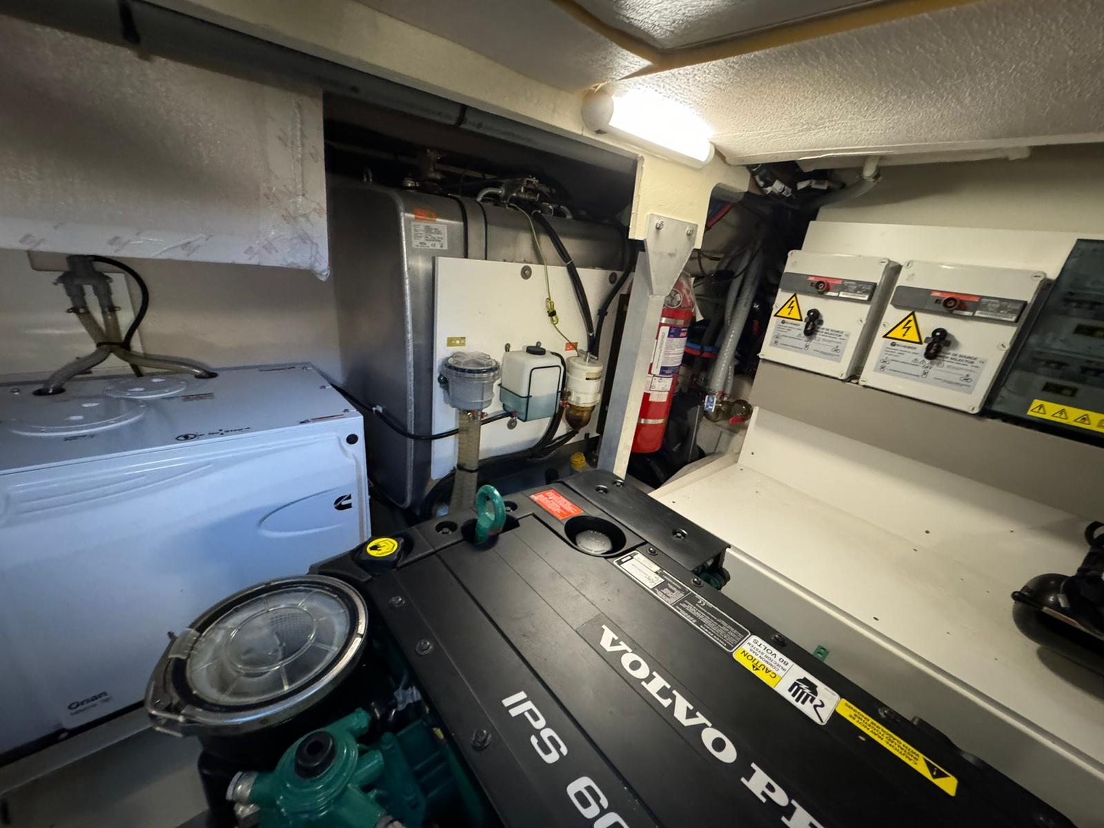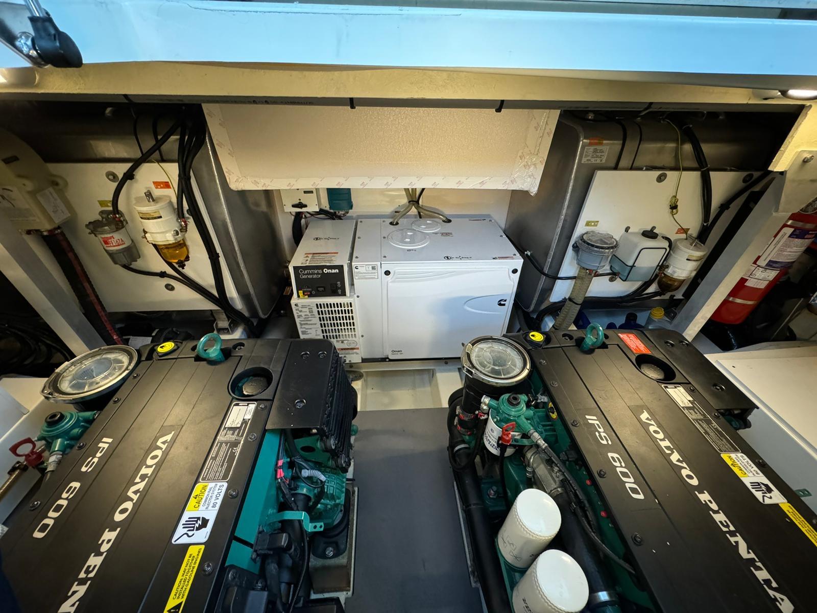 Motorisation : 2x IPS 600 Volvo Penta avec manœuvres facilitées par le joystick pour une précision inégalée dans les ports et mouillages. Les moteurs sont fiables et puissants, avec un excellent rapport consommation/performances.