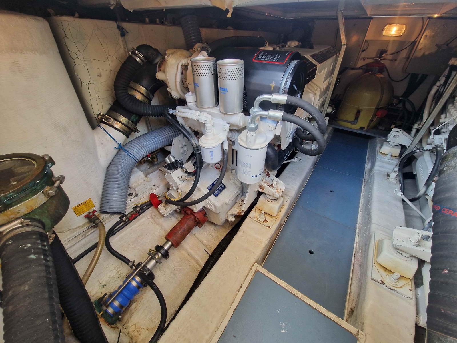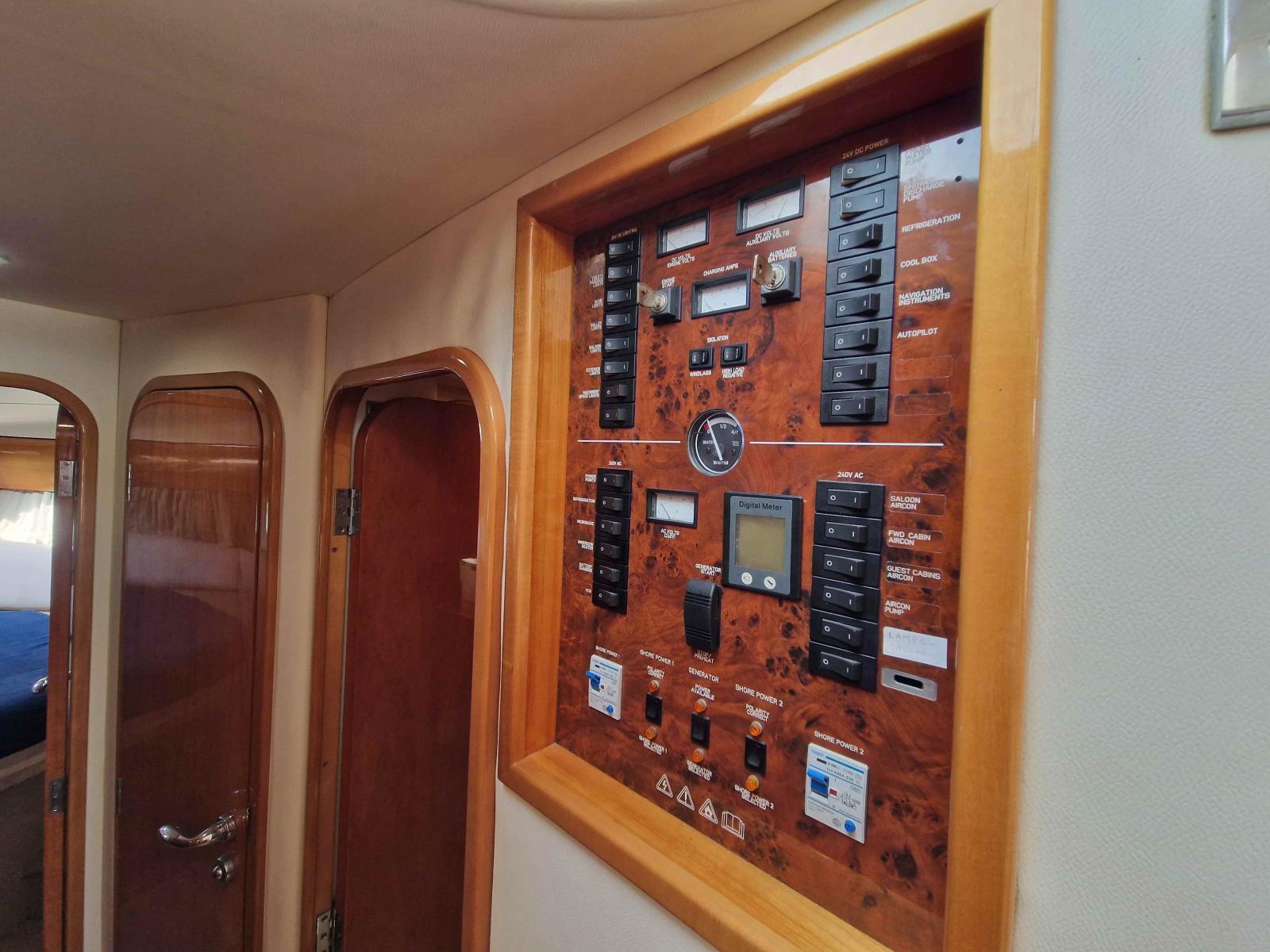 Princess 45 Flybridge occasion de 2000 avec 2x480 cv Volvo et seulement 840 heures. Trés bonne maintenance, batteries de 2023-2024, climatisation réversible, propulseur, groupe, electronique compléte, hydrogommage 2023.