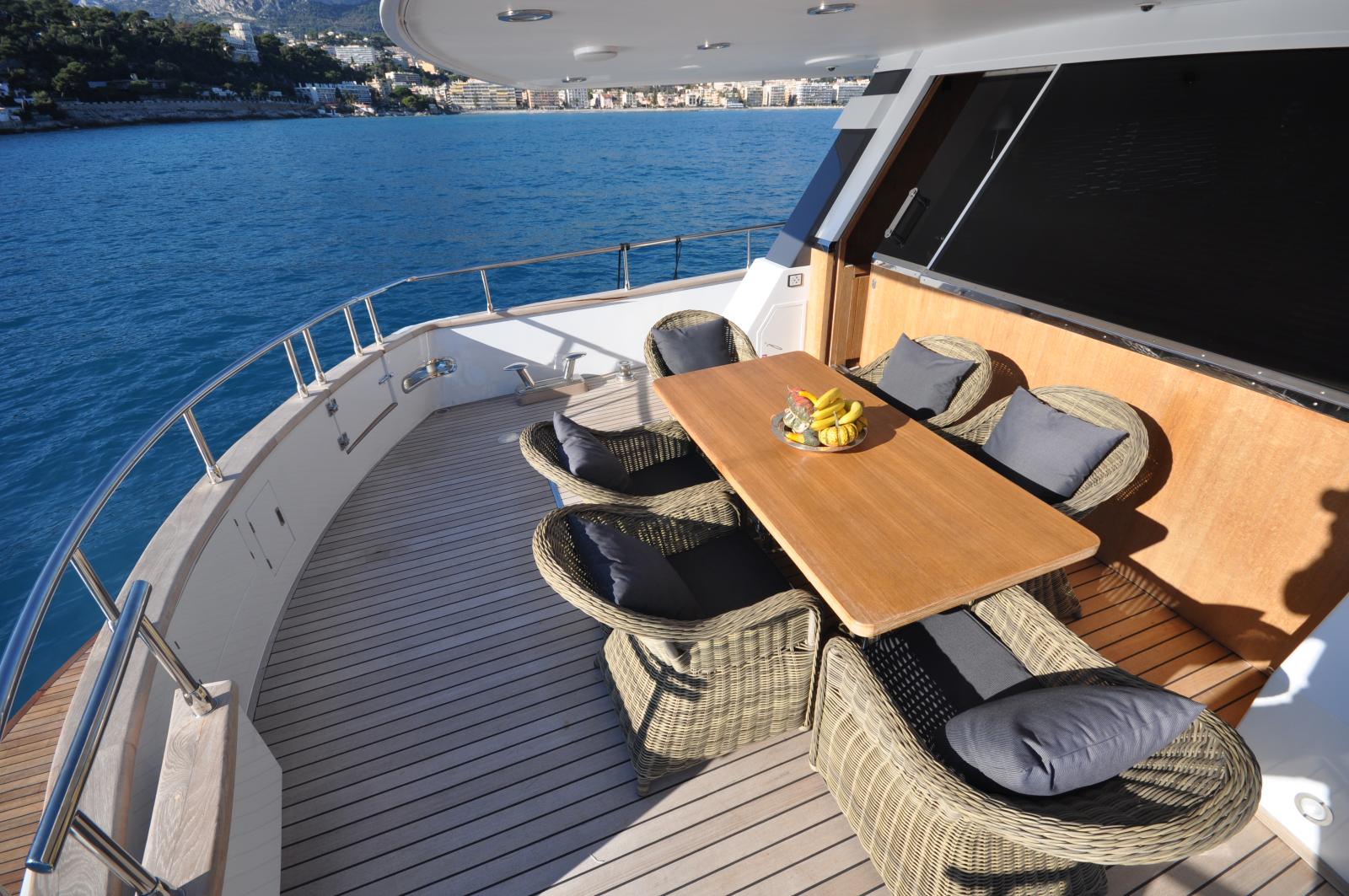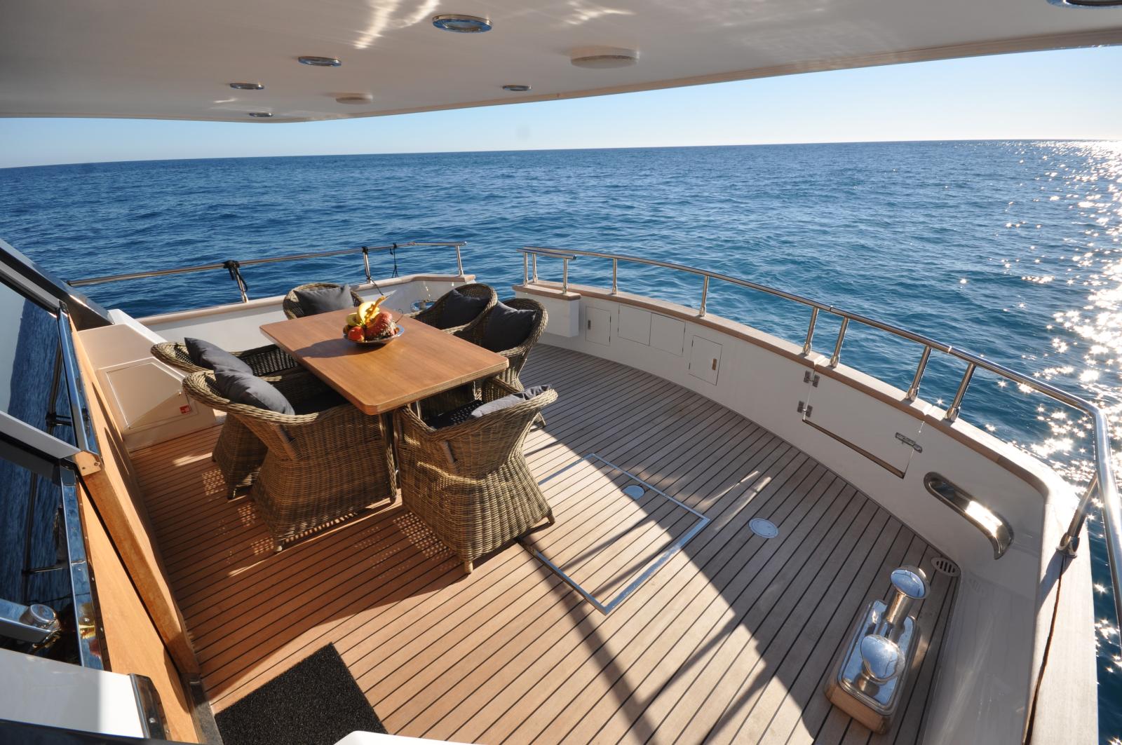 Équipé de moteurs MAN 1000 cv et de stabilisateurs NAIAD, il garantit une navigation agréable et sécurisée.