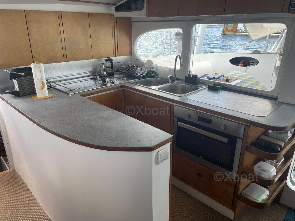 Mon Ksenia 149 est un catamaran de croisière rapide, construit en 2010 par le chantier Ksenia-Yachts selon un plan d'Erick Lerouge. Disponible en version trois cabines avec un mât rotatif en carbone, ce catamaran est idéal pour ceux qui cherchent des sensations fortes en navigation et un confort optimal au mouillage.