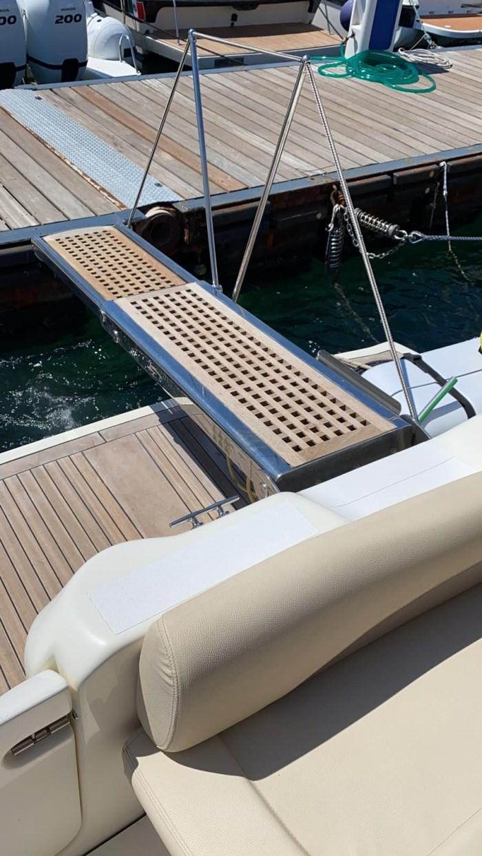 Alarme moteur, Eau sous pression, Douche de cockpit, Passerelle (idraulica), Plateforme arrière, Pompe de cale automatique, Onduleur, Rollbar, Guindeau électrique, Echelle de bain.