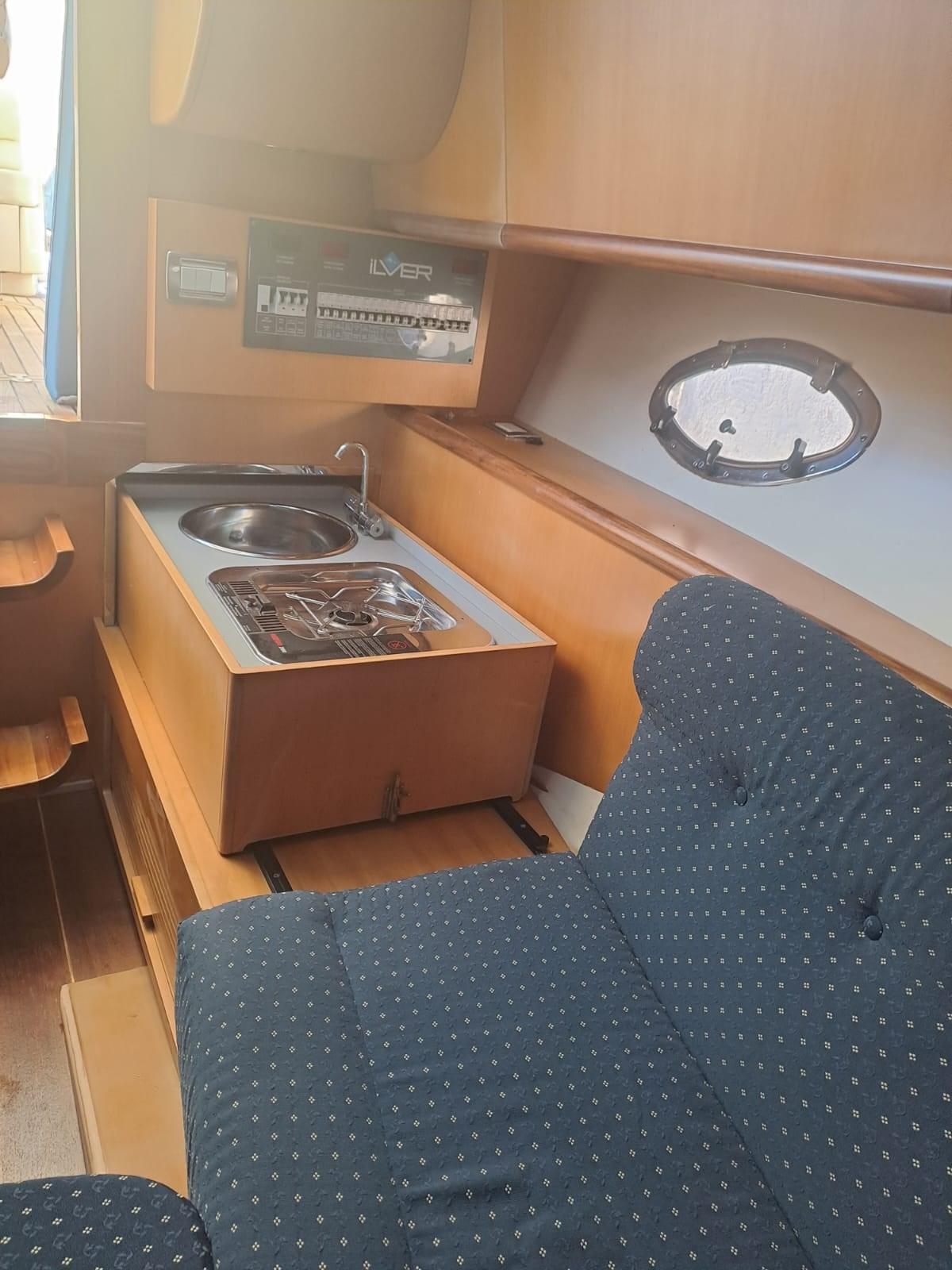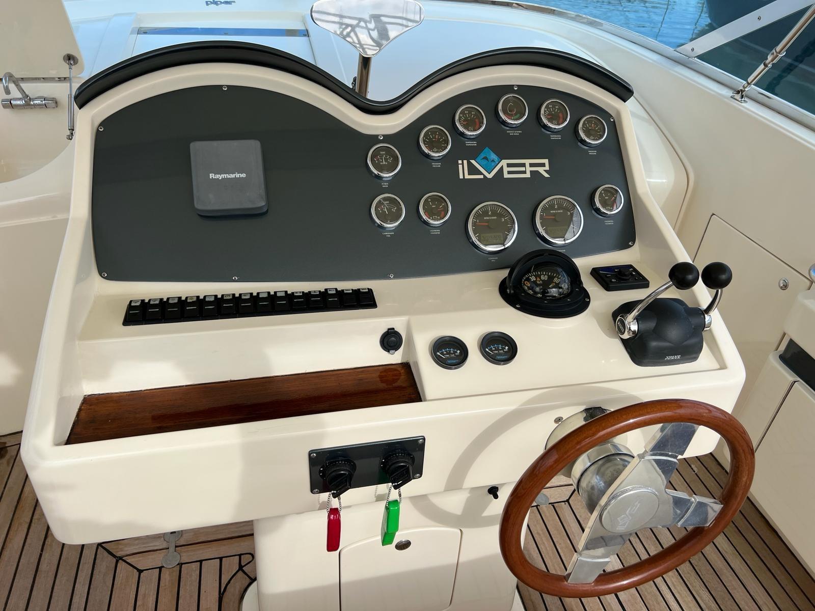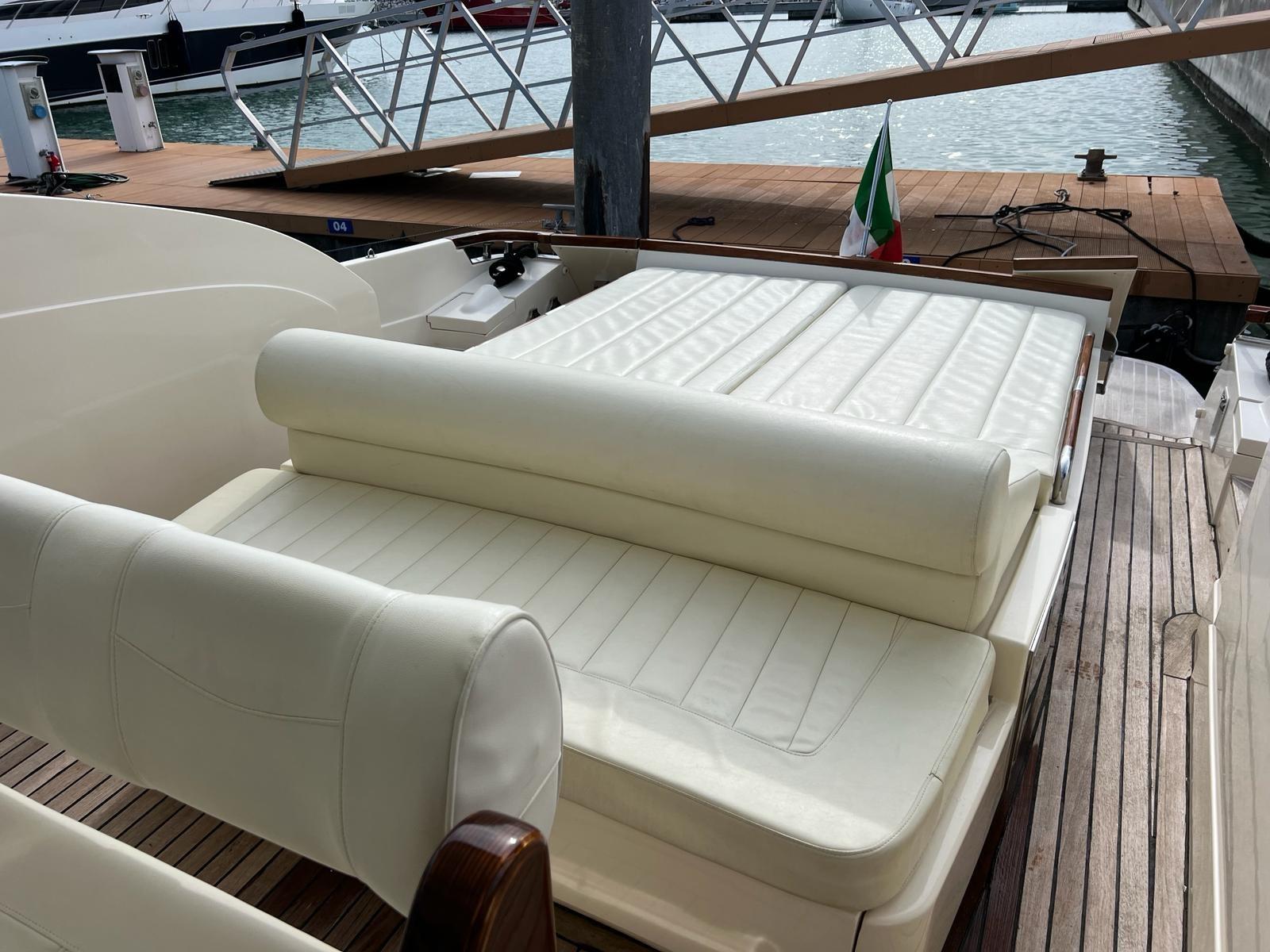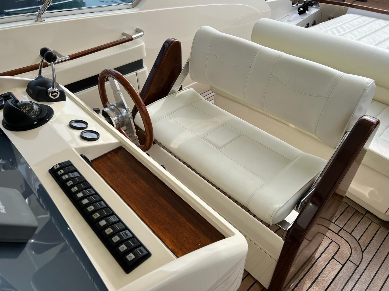 Alarme moteur, Eau sous pression, Flaps hydrauliques, Plateforme arrière, Cockpit en teck, Prise de quai, Guindeau électrique, Echelle de bain.