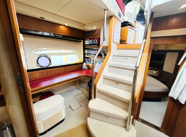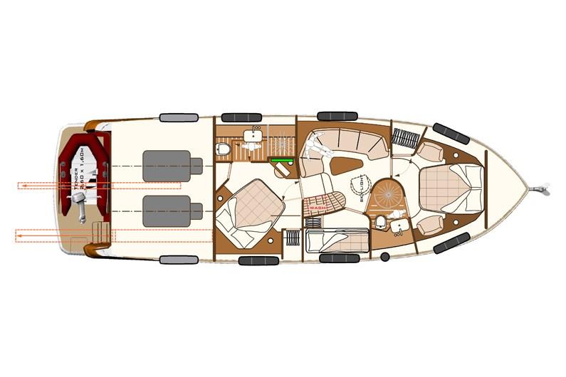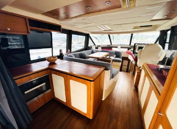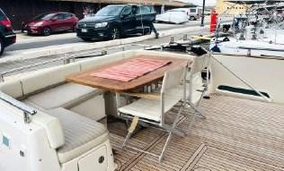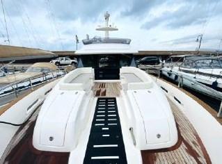 Alarme gaz, Alarme moteur, Eau sous pression, Passavant en teck, Douche de cockpit, Phare de poursuite, Flaps hydrauliques, Extincteur(s) fixe(s), Spots sous-marins, Panneau solaire, Passerelle (idraulica), Plateforme arrière, Pompe de cale automatique, Pompe de cale manuelle, Cockpit en teck, Prise de quai, Guindeau électrique, Echelle de bain, Stabilisateurs (Seakeeper 7), table de cockpit, Corne, Winch électrique arrière.