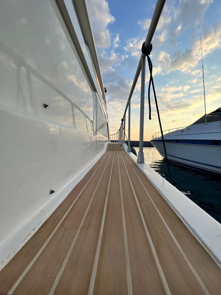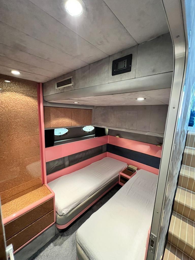 Moteurs GG 2300 ; croisière à 30 nœuds 140 l7/h ; 2 cabines de couchage à l’étage avec 2 WC avec douche séparée, cabine propriétaire avec salle d’eau et toilettes, cabine de marin non aménagée à l’arrière ; feuilles de fermeture totales du cockpit ; 2015 NOUVEAU : 3 toilettes d’eau douce Tecma avec bidet conçu pour réservoir d’eaux noires non présent, réservoir d’eaux grises en acier inoxydable, batterie 24 v 1200 ah ; 2016 NOUVEAU : GPS, lumières led ; 2017 NOUVEAU Revêtements de cockpit Flexiltex, passerelles latérales, salon d’escalier et couloir de cabine, 2 lumières sous-marines à l’arrière, bagues d’essieu, équilibrage de l’hélice ; 6.2023 NOUVEAU ; Le pilote automatique Raymarine coûte 3 800 euros ; 2024 NOUVEAU : fly avec solarium à l’avant, timonerie et salon à l’arrière, grand frigo, lumières de courtoisie, prises USB, chargeur de téléphone portable, système électrique 24 V, révision du groupe électrogène, relooking des roulements externes, lumières bleues, phares de plongée, relooking des moteurs zéro heure, climatisation moteur et pompe, autoclave, rasage synthétique en teck, polissage total, système stéréo, révision électronique totale, Tender Sezna FB ; bateau prêt à la bouée tous les travaux 2024 avec factures démontrables ; 2025 NOUVEAU : Robinets de poupe, caméra de poupe pour les manœuvres, stabilisateur de tension, révision de la climatisation ; MÉDIATION 5 % + TVA À LA CHARGE DE L’ACHETEUR SUR LE PRIX D’ACHAT FINAL ;