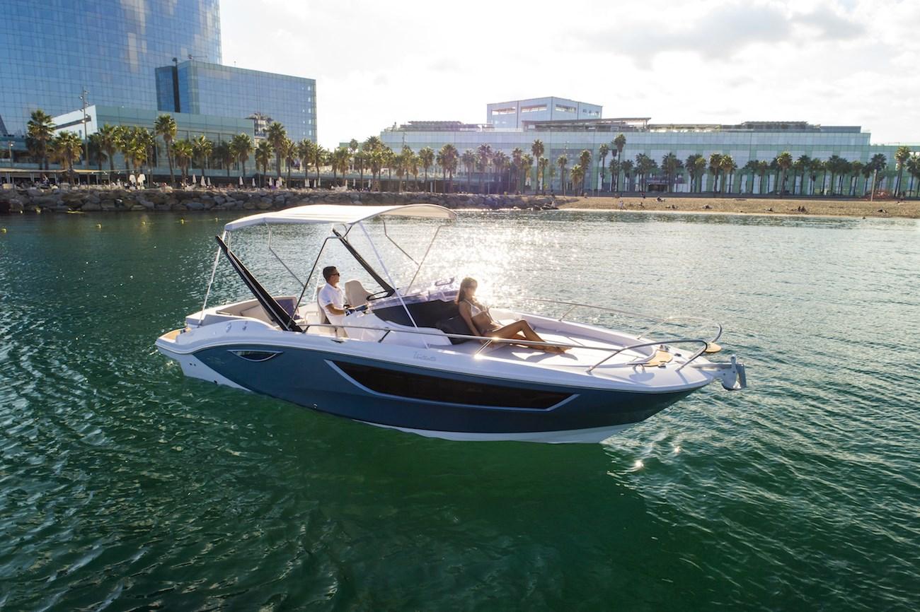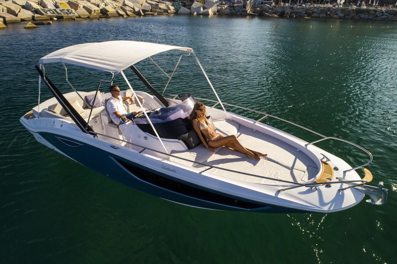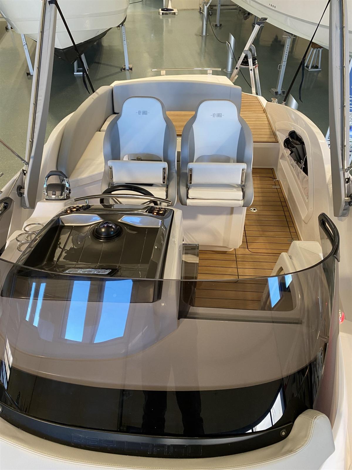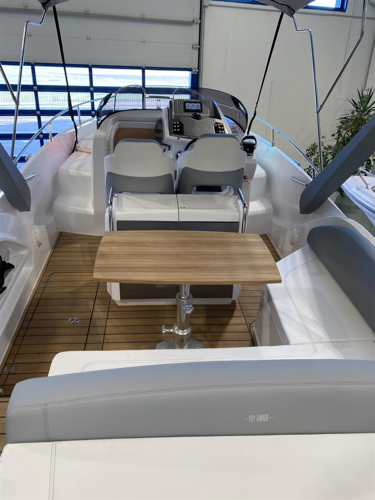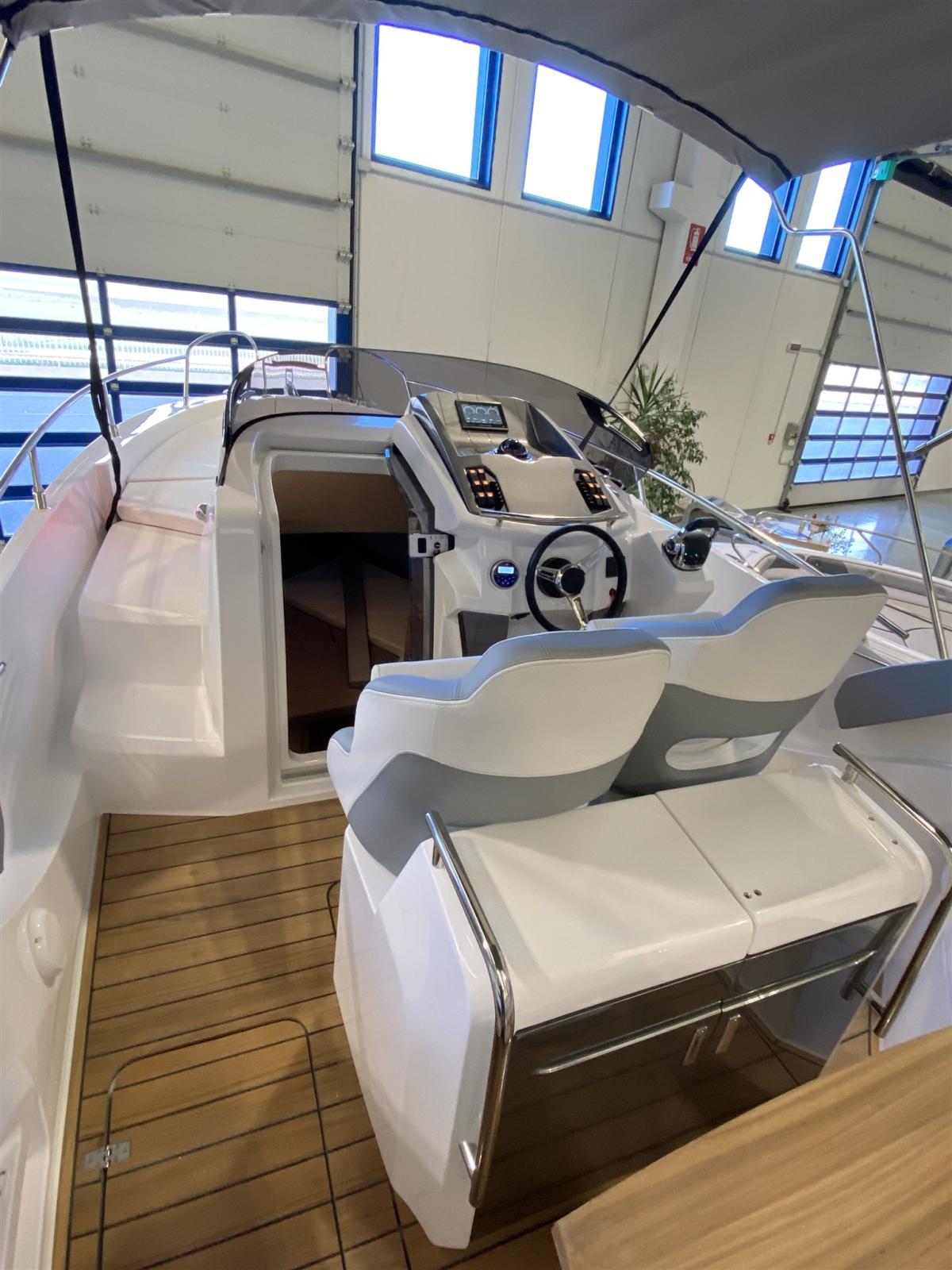 Eau sous pression, 2 Batteries, Couleur spéciale (DARK GREY), Douche de cockpit, Flaps hydrauliques, Extincteur(s) fixe(s), Éclairage de courtoisie, Spots sous-marins, Plateforme arrière (teak), Pompe de cale manuelle, Cockpit en teck, Guindeau électrique, Echelle de bain, table de cockpit, Corne.
