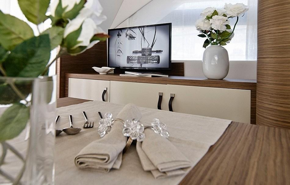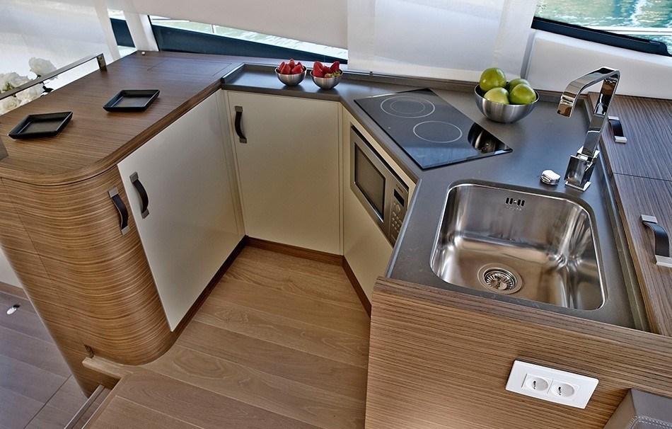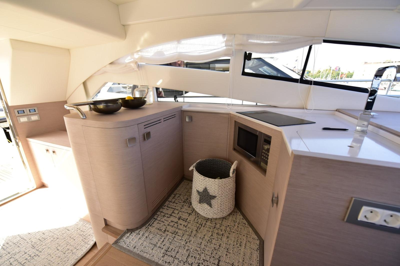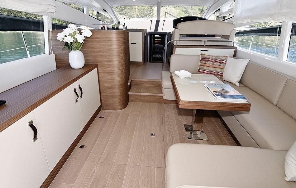 Eau sous pression, Douche de cockpit, Plateforme arrière, Pompe de cale automatique, Onduleur, Guindeau électrique, Echelle de bain.