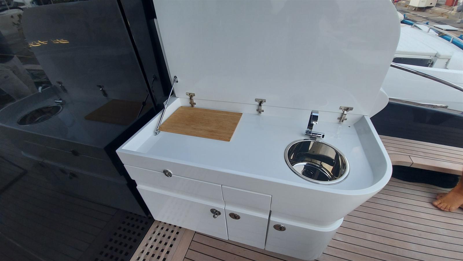 Propulseur de poupe (Sidepower), Propulseur d'étrave (Sidepower), Passerelle (idrualica a scomparsa Besenzoni), Guindeau électrique (Lofrans 1500 W), Echelle de bain (a scomparsa Besenzoni), 2 Winch électrique arrière (Lofrans 1000 W).