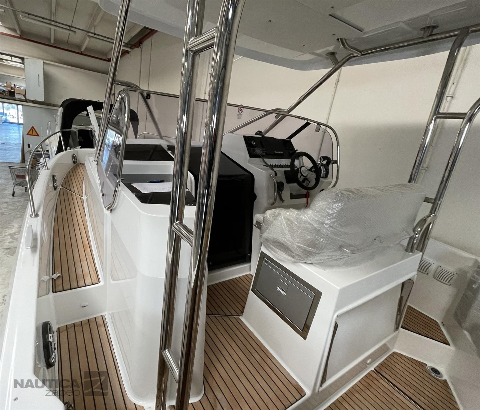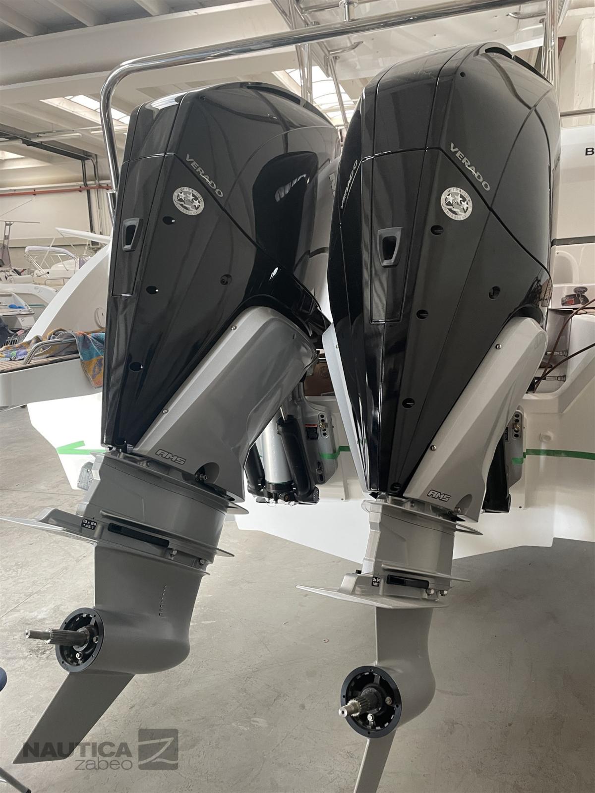 Alarme moteur, 2 Batteries, Douche de cockpit, Flaps électriques (Zip wake), Indicateurs de flaps, Éclairage de courtoisie, Plateforme arrière (Piattaforme da bagno annesse), Prise de quai, Guindeau électrique, Echelle de bain.