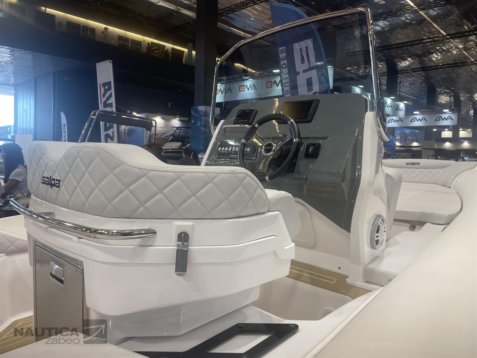 Equipement standard inclus dans le prix : 3 œillets en acier inoxydable, 4 taquets en acier inoxydable, L, prise d’air GAS, pare-brise avec gyromètre en acier inoxydable, coussins complets à cellules fermées, crochets de levage, feux de navigation, coffre sous la console, coffre sous le siège de barre, système électrique complet 12 V, klaxon, armoire de cuisine, plate-forme arrière, pompe de cale automatique, échelle télescopique, Canapé arrière avec dossier rabattable, petit siège devant la console de direction, pompe de direction hydraulique (sans cylindre moteur), volant, boîtier de batterie, boyaux militaires Orca 866 et gonfleur manuel.