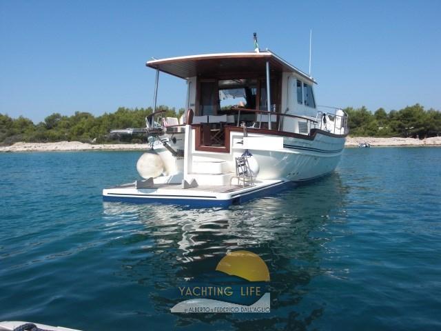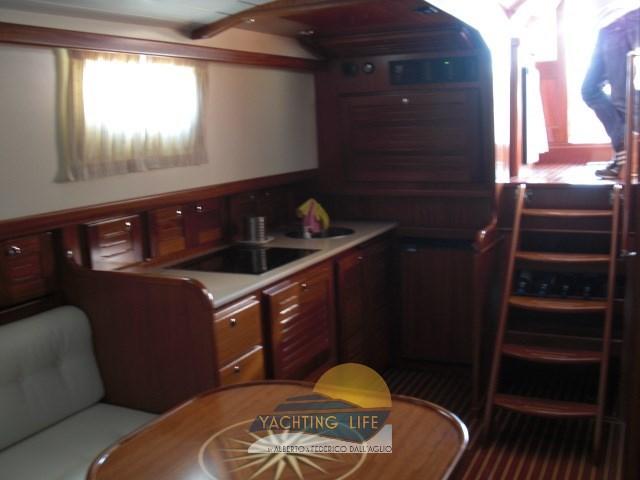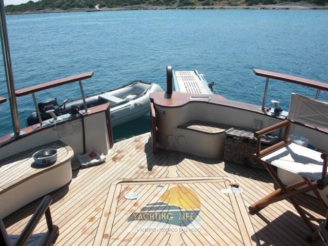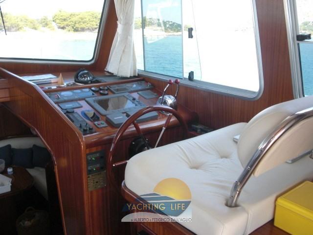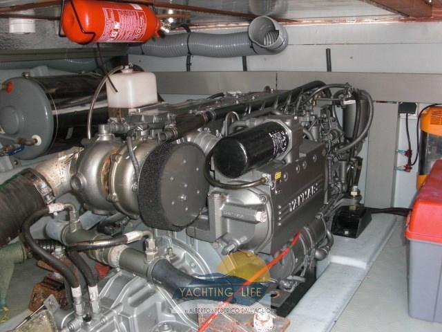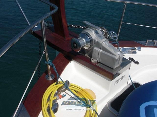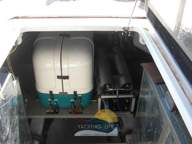 Alarme moteur, Alarme de pompe de cale, Ancre (30kg e 100mt catena in acciaio da 12), Eau sous pression, Douche de cockpit, Double barre à roue, 2 Flaps hydrauliques, Hard top, Lavage de chaine, Passerelle (Gandola a 3 stadi), Plateforme arrière, Pompe de cale automatique, Porte latérale, Cockpit en teck, Prise de quai, Connexion eau sous pression à quai, Onduleur (2/220), Guindeau électrique, Echelle de bain, table de cockpit, Annexe (3mt Honda marine e motore Suzuky 15hp 4 tempi), Corne.