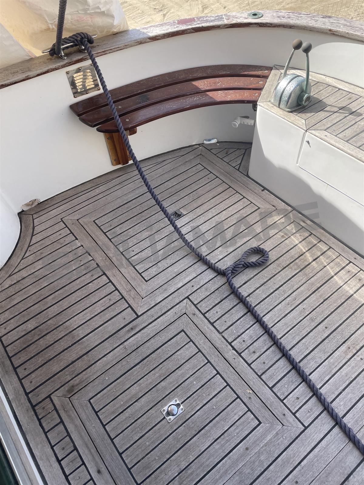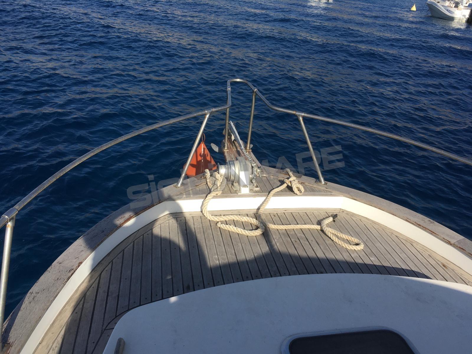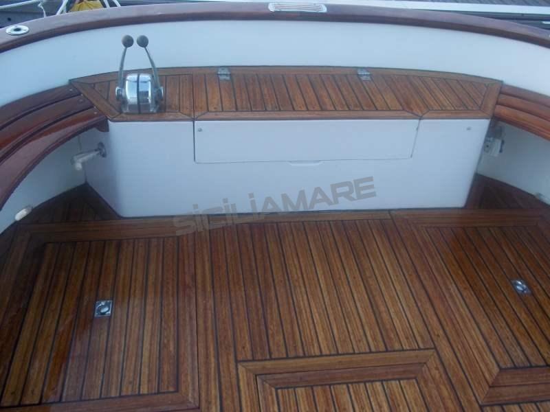 Alarme moteur, Eau sous pression, 3 Batteries, Passavant en teck, Douche de cockpit, Plateforme arrière, Pompe de cale automatique, Prise de quai, Guindeau électrique (con telecomando), Echelle de bain.