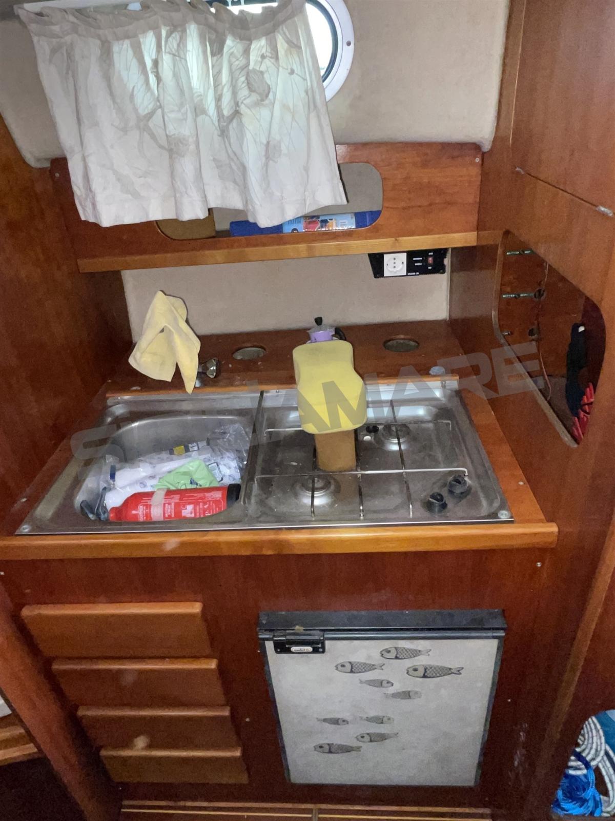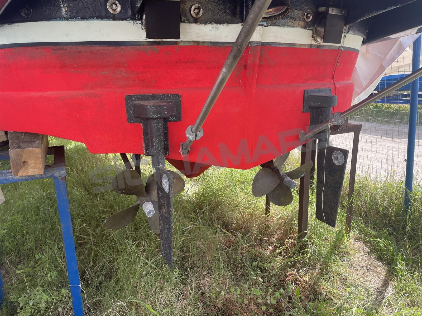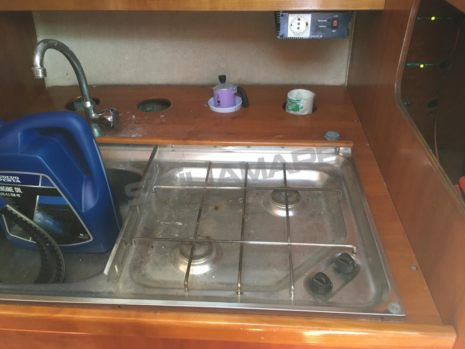 Alarme moteur, Eau sous pression, 3 Batteries, Passavant en teck, Douche de cockpit, Plateforme arrière, Pompe de cale automatique, Prise de quai, Guindeau électrique (con telecomando), Echelle de bain.
