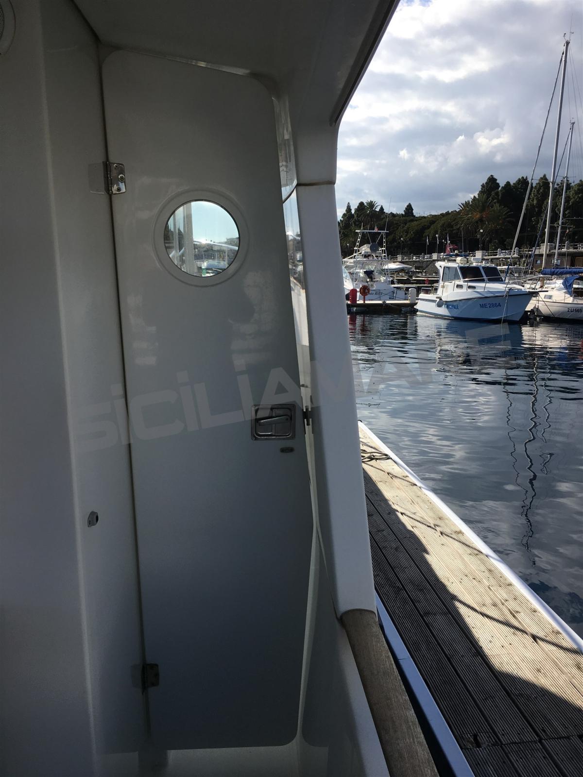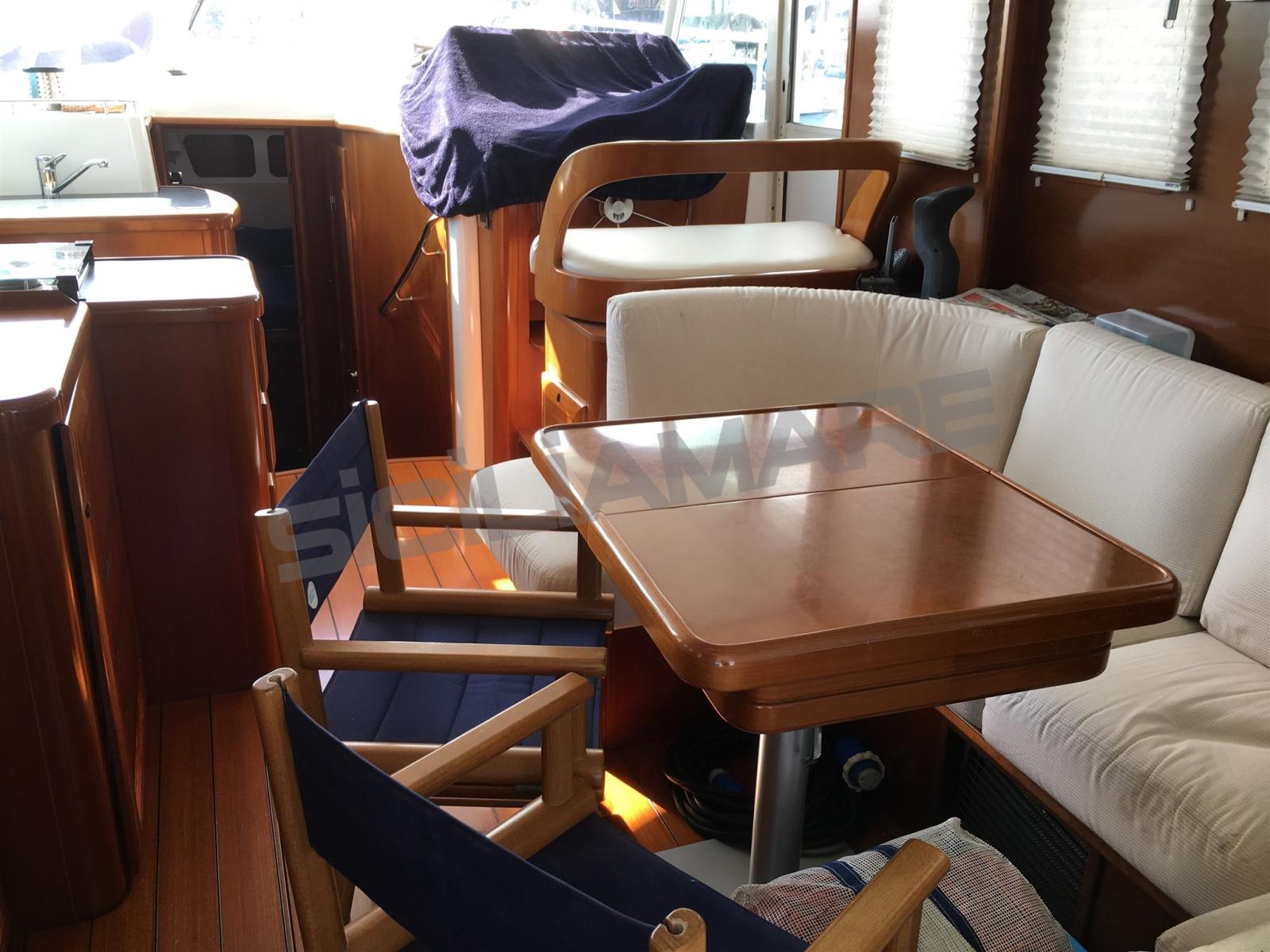 Alarme moteur, Alarme de pompe de cale, Eau sous pression, Couleur spéciale, Douche de cockpit, Double barre à roue, Phares fixes arrière, Phare de poursuite, Flaps hydrauliques, Grue de flybridge, Extincteur(s) fixe(s), Indicateurs de flaps, Éclairage de courtoisie, Passerelle, Plateforme arrière, Pompe de cale manuelle, Porte latérale, Porte latérale, Cockpit en teck, Prise de quai, Onduleur, Guindeau électrique, Echelle de bain, Système de filtration des eaux usées, table de cockpit, Annexe, Filières avec sortie latèrale, Corne.