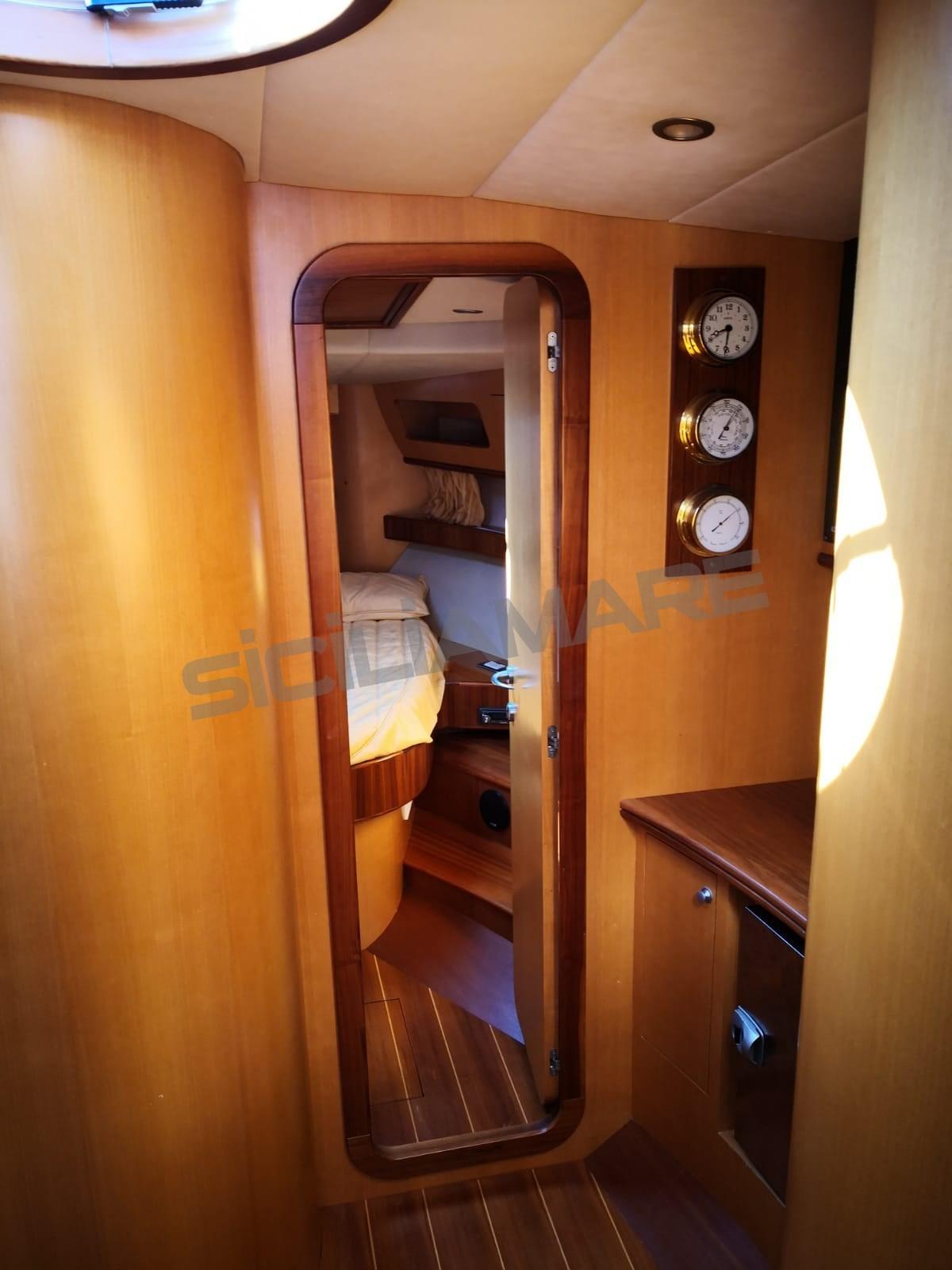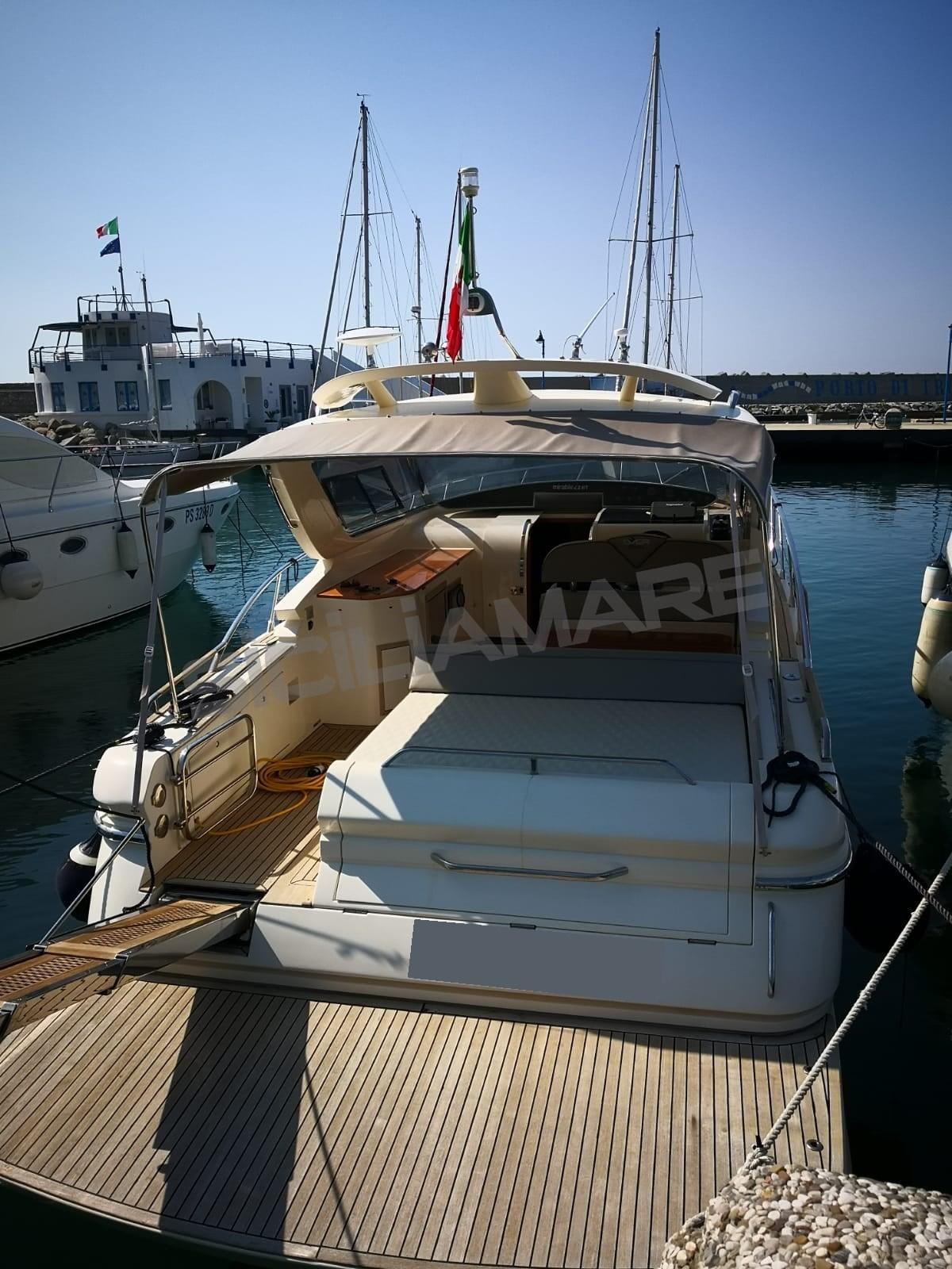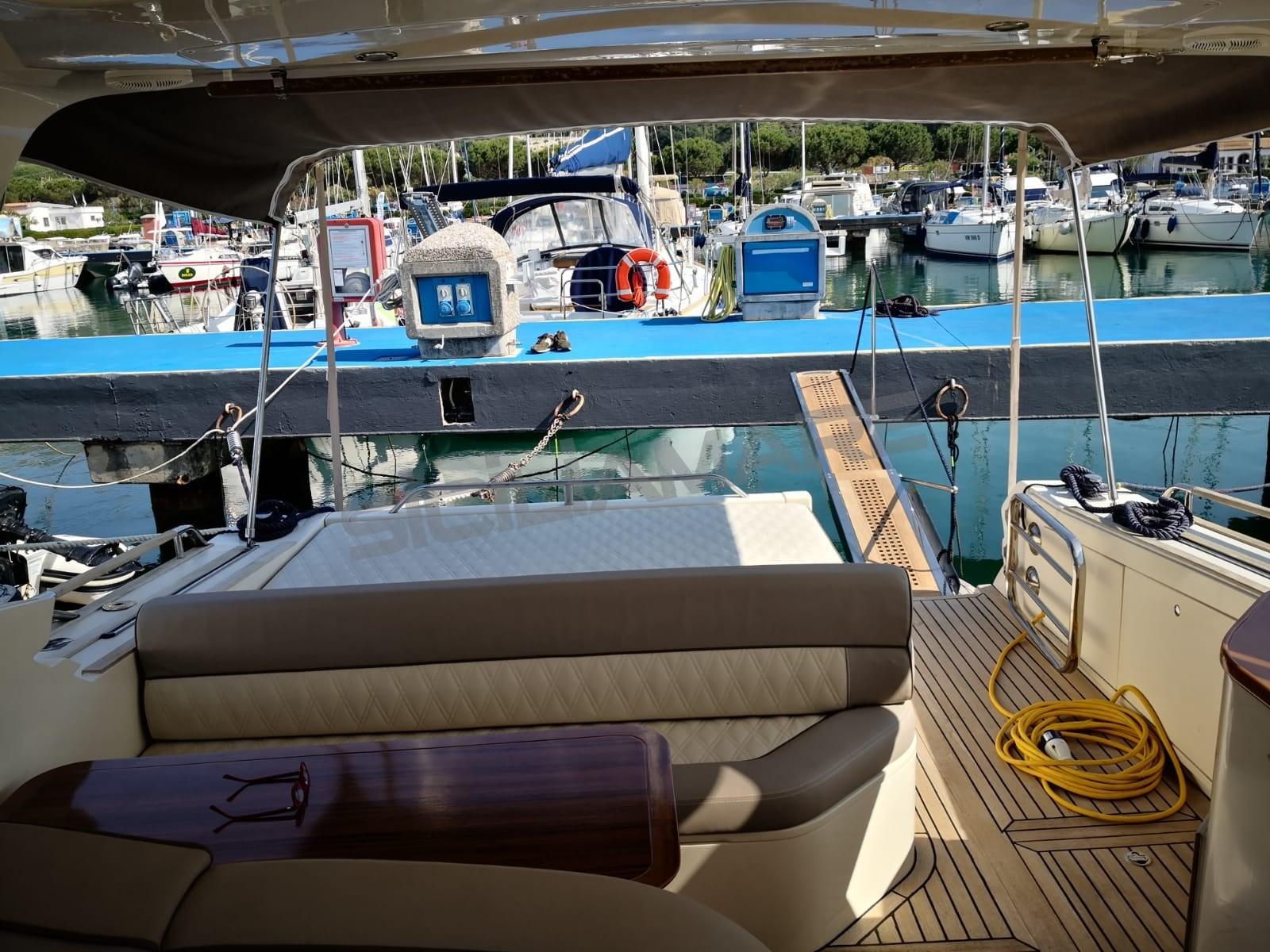 Alarme moteur, Eau sous pression, Passavant en teck, Douche de cockpit, Flaps hydrauliques, Hard top (Electric), Indicateurs de flaps, Passerelle (Hydraulic 3 sfili), Plateforme arrière, Pompe de cale automatique, Cockpit en teck, Prise de quai, Guindeau électrique, Echelle de bain, table de cockpit.