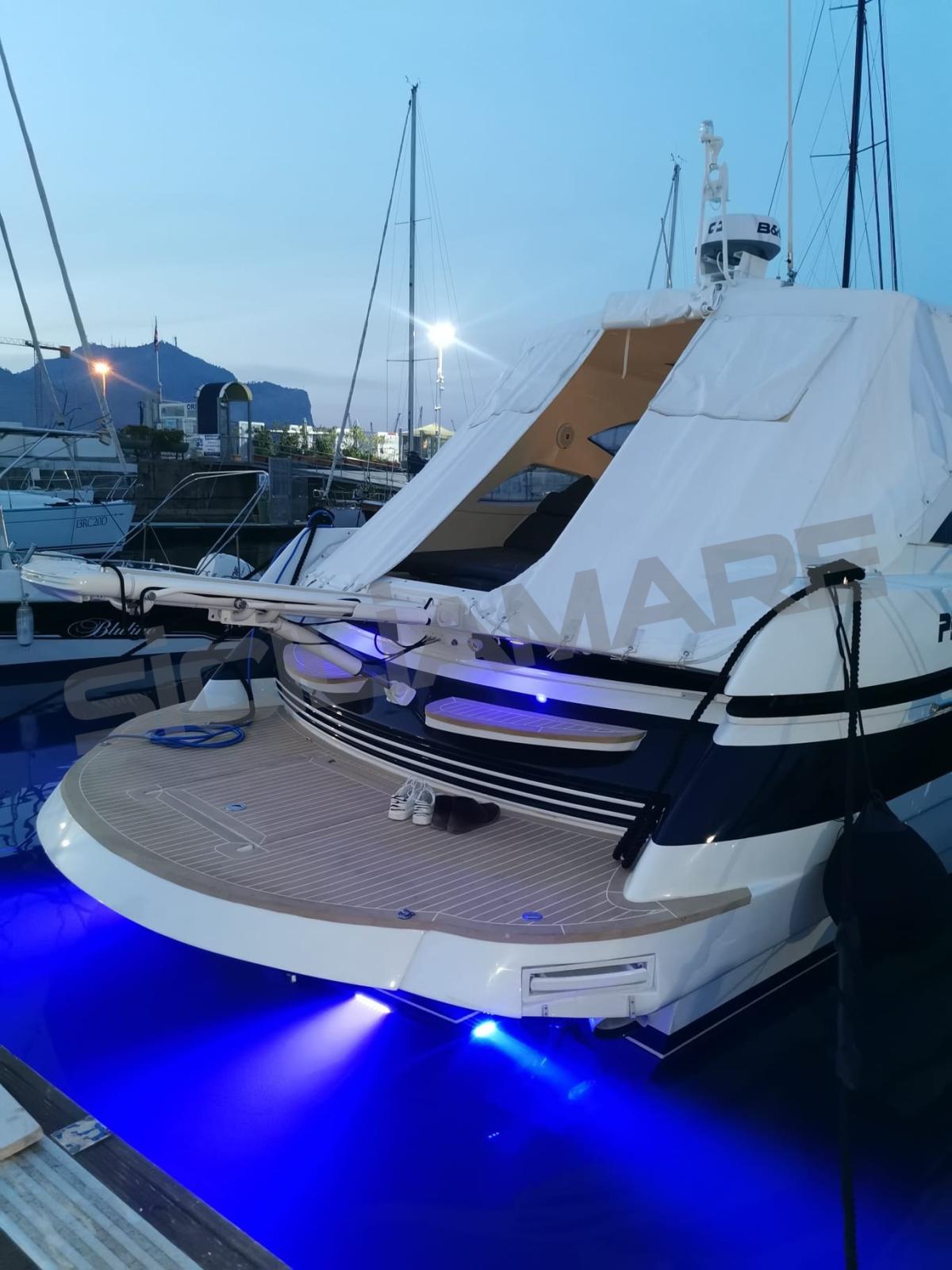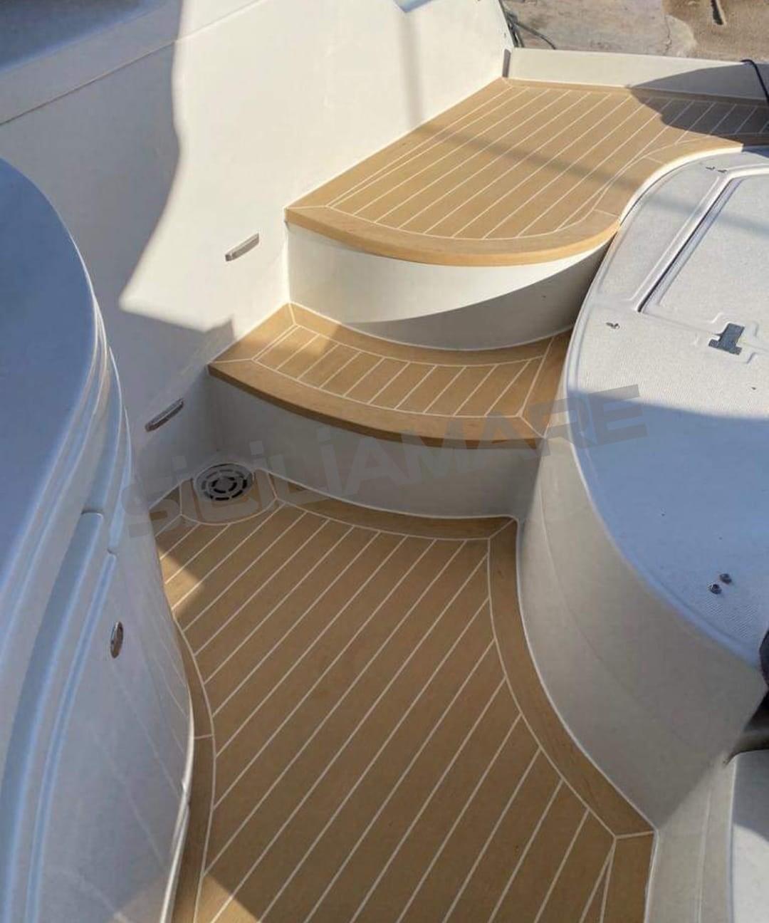 Alarme moteur, Alarme de pompe de cale, Eau sous pression, Douche de cockpit, Flaps hydrauliques (rev.2023), Hard top (Soft-top Apribile), Indicateurs de flaps, Éclairage de courtoisie, Spots sous-marins, Passerelle (Hydraulic), Plateforme arrière, Pompe de cale automatique, Pompe de cale manuelle, Cockpit en teck, Prise de quai, Rollbar, Guindeau électrique, Echelle de bain, table de cockpit.