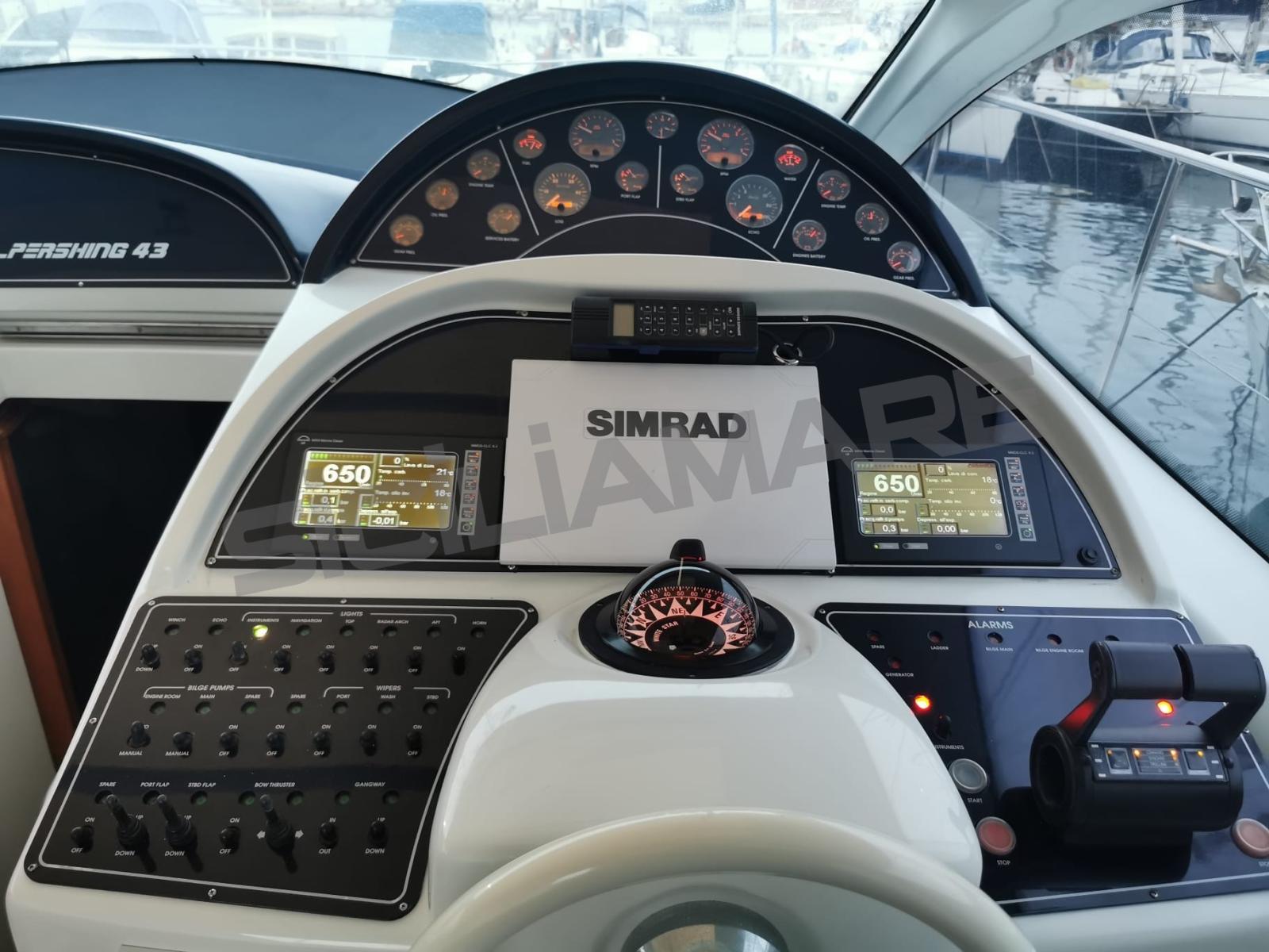 Indicateur d'angle de barre, Antenne radar (Simrad 2023), Commande électrique, Ordinateur fixe de bord, Pilote automatique (Simrad 2023), Plotter GPS (Simrad 2022).